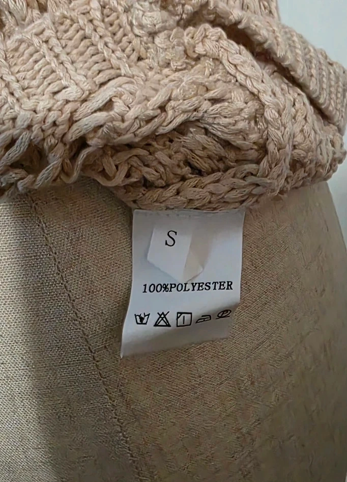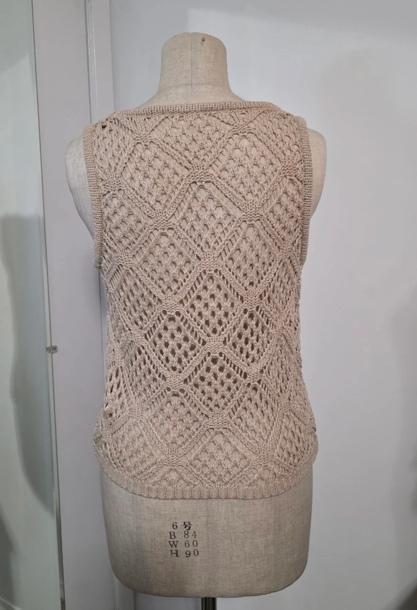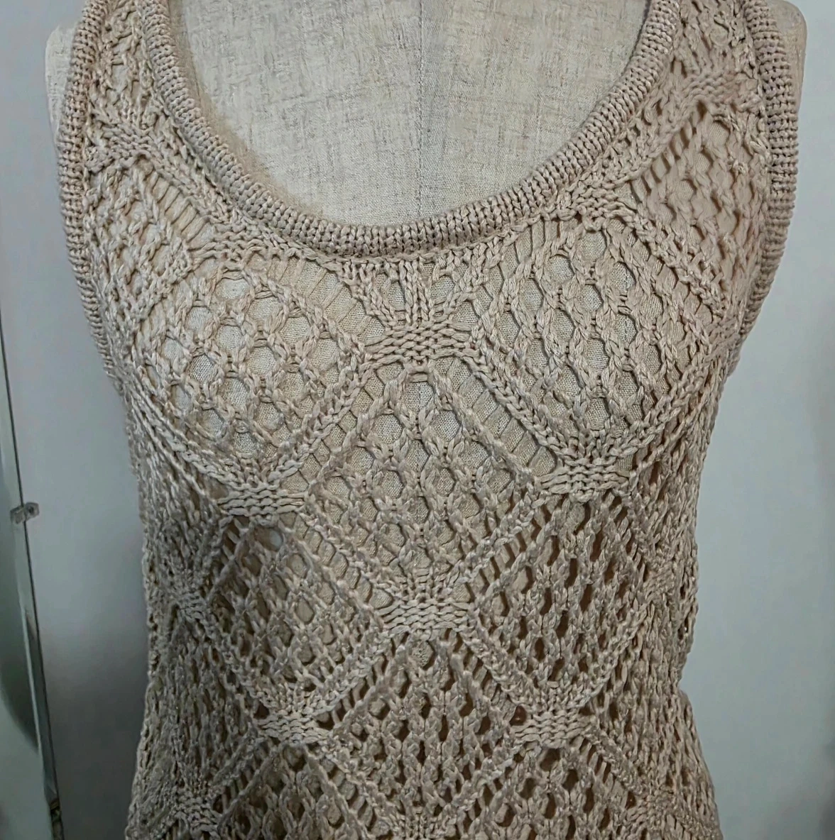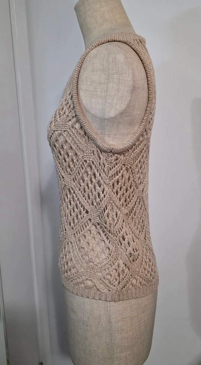 Selling a cute crochet tank top in a neutral colour. It's a size small and made of 100% polyester. Perfect for layering or wearing on its own!