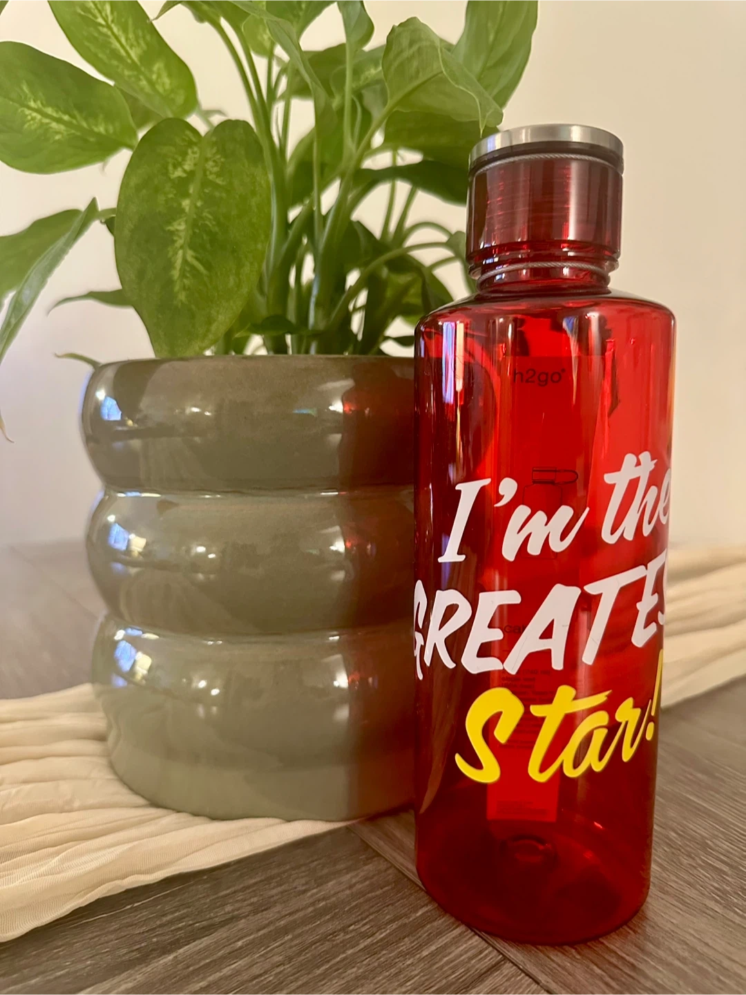 Here's a red water bottle that celebrates the Funny Girl Broadway show! I’ve never used it, and it’s ready for a new owner. The bottle features the phrase "I'm the GREATEST Star!"
