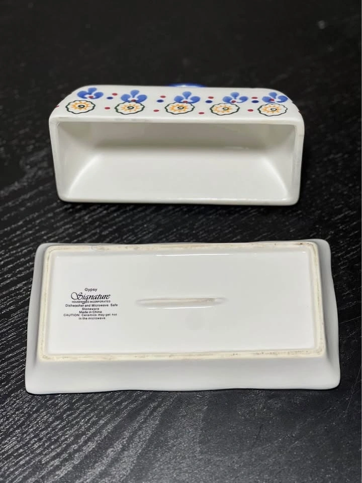 Gypsy Signature Butter Dish Red Burgundy & Blue Floral & Dots