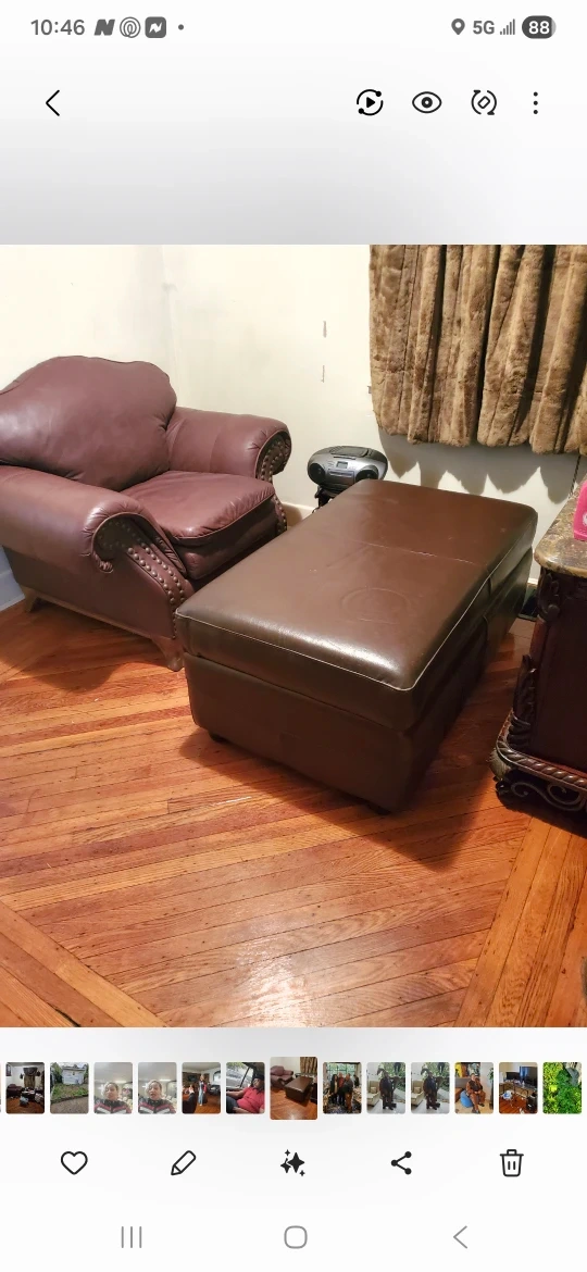 Selling a comfortable brown leather chair . It's great for relaxing. The chair has a classic design with nailhead trim.. Perfect for any living room!