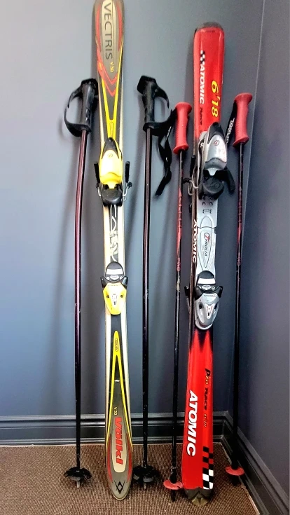 Selling a pair of Atomic Pro Race 6'18 skis (54") with poles. And second pair of Volkl VECTRIS V130 skis, 58 inches long, complete with poles. They're in good condition and ready for the slopes!