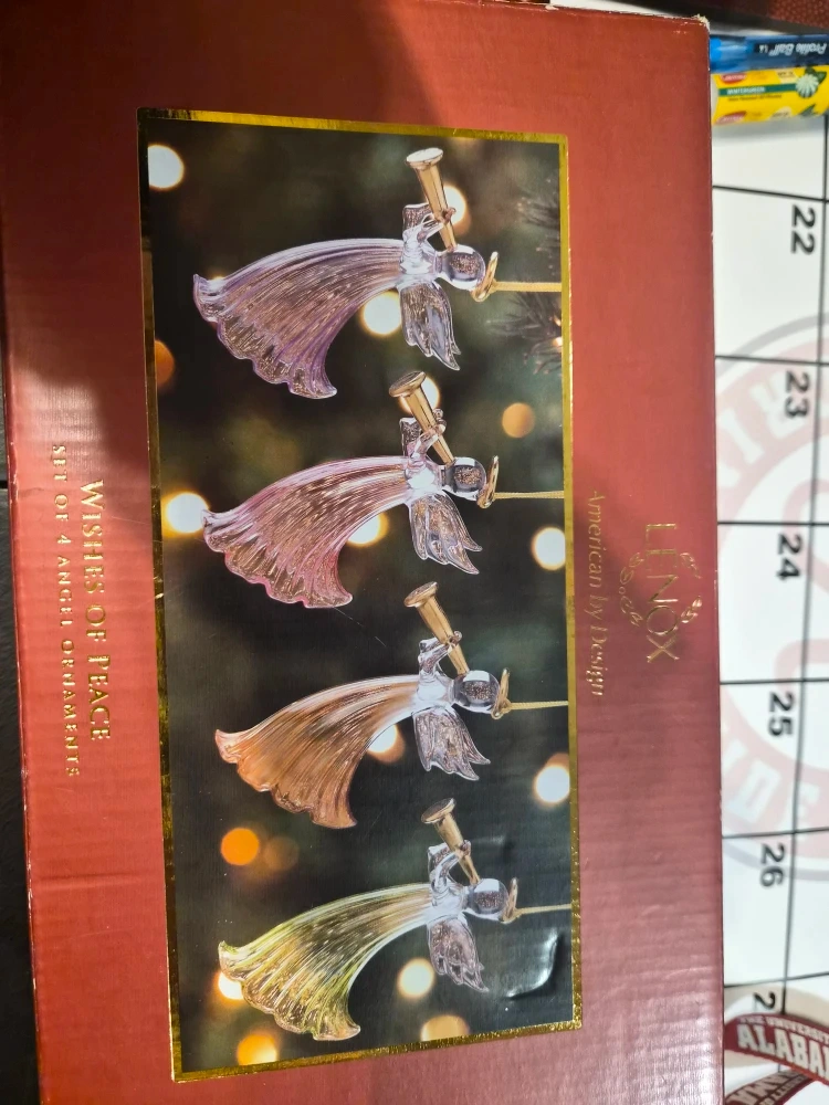 Selling a set of 4 Lenox "Wishes of Peace" angel ornaments. These beautiful ornaments are "American by Design" and come in their original box. They're perfect for adding a touch of elegance to your holiday decorations!