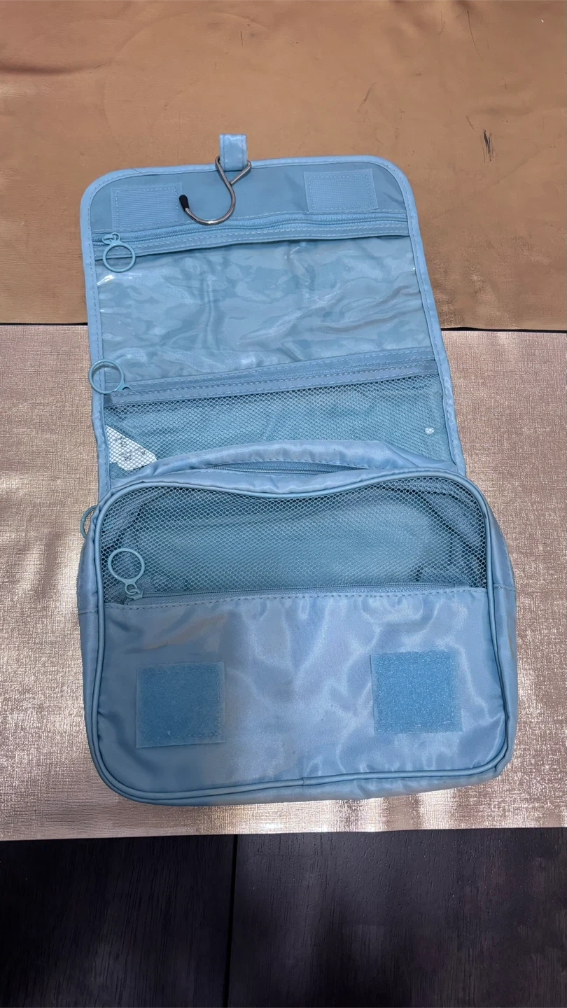 I'm selling a Narwey travel toiletry bag in a lovely blue color! It's perfect for keeping all your essentials organized when you're on the go. It features multiple compartments and a convenient hook for hanging