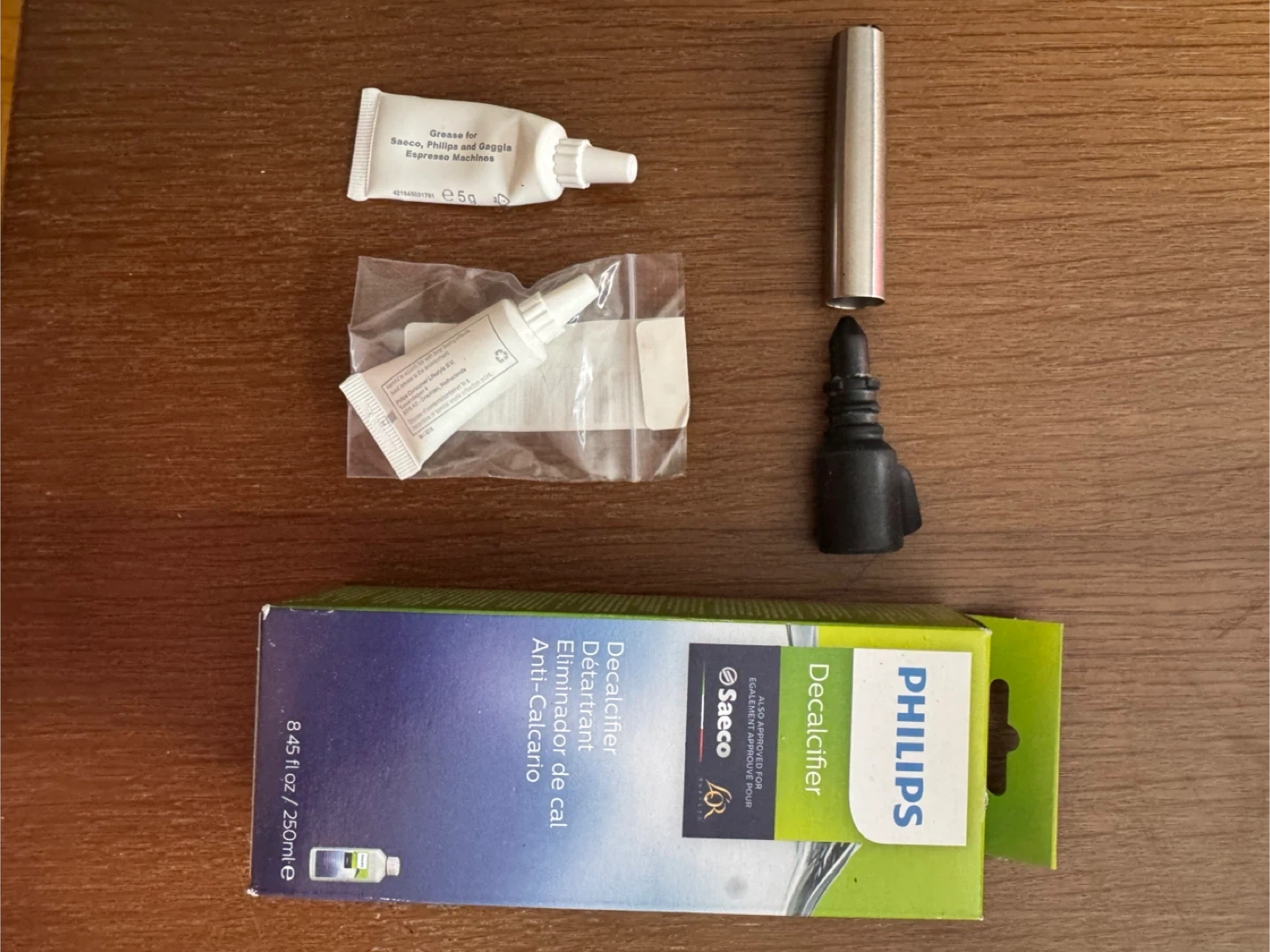 Selling a Philips Saeco decalcifier for espresso machines. Also included is grease(one new and one used tubes) for Saeco Philips espresso machines. Perfect for maintaining your espresso machine!