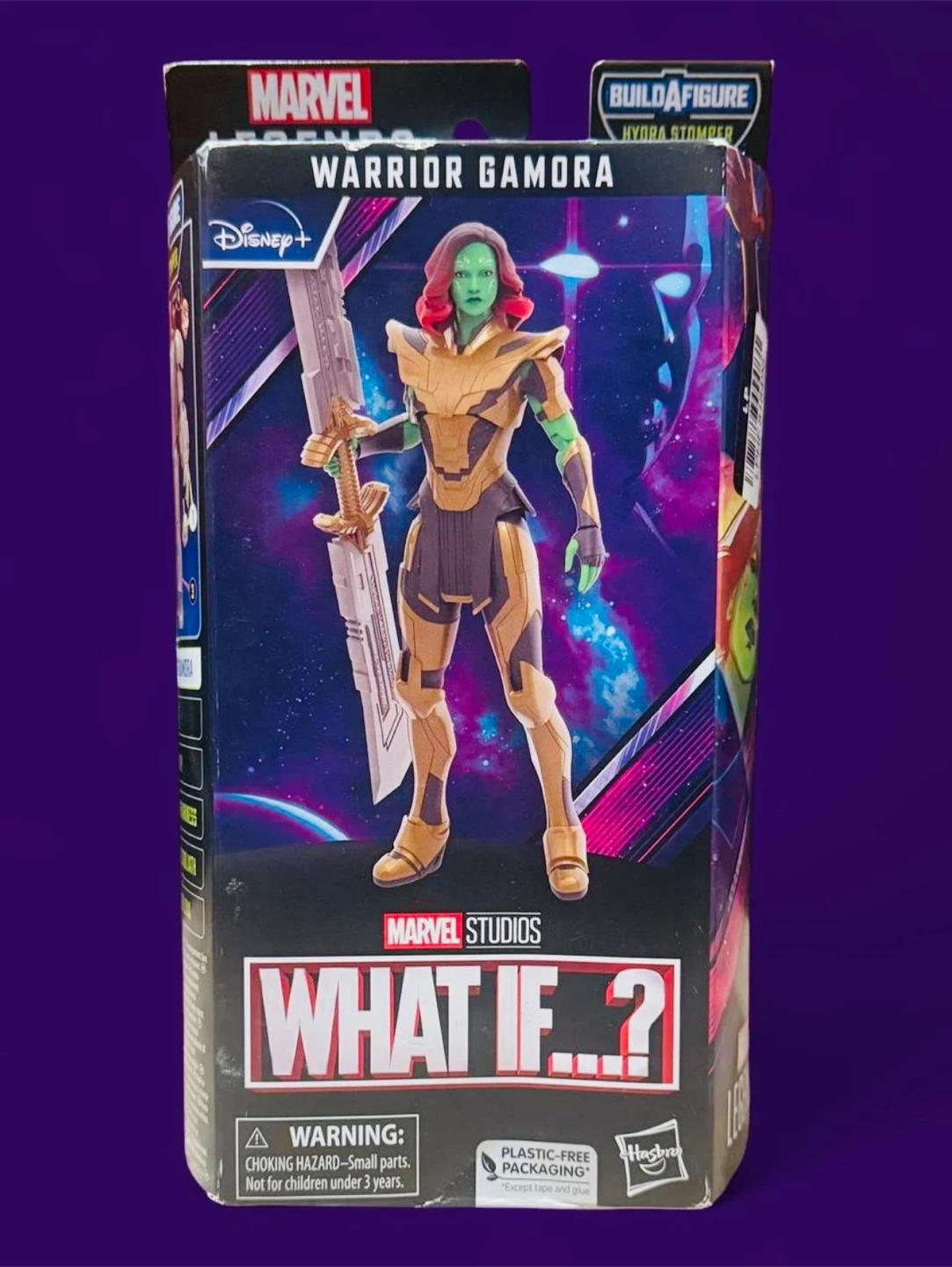 Selling a Marvel Legends Warrior Gamora action figure! This figure is from the "What If...?" series and comes with a Build-A-Figure piece for Hydra Stomper. The box is included, and the figure is in great condition. Perfect for any Marvel collector!