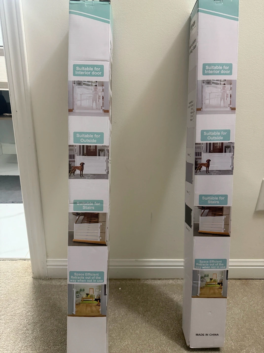 Selling 3 retractable safety gates all 3 gates for $20 Brand new in the box suitable for babies and pets, for both indoor and outdoor use! It's space-efficient, retracting out of the way when not in use. Dimensions are: Height: 86cm, Length: 120cm, 130cm, 140cm, 150cm, and 180cm. Pick up in Ajax at Salem and Rossland