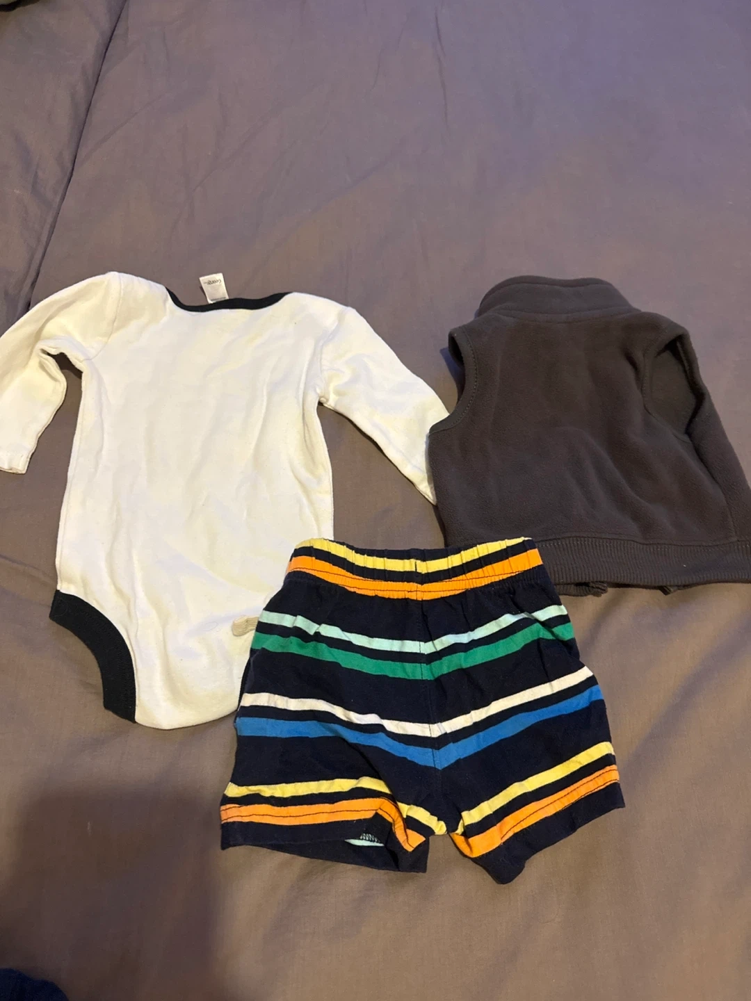 Selling a cute bundle of newborn baby clothes! Includes a Carter's vest, a George onesie, and Gap shorts. All in great condition and ready for your little one!
