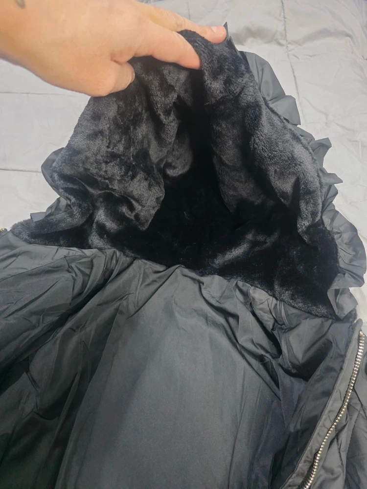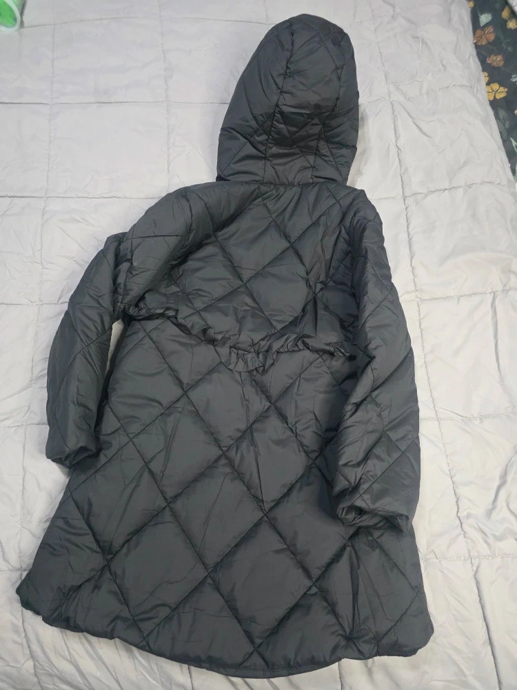 This is a Haloumoning girls winter coat, perfect for keeping your little one warm! It's a stylish black fleece coat with a quilted ruffle puffer jacket design. The size is 7-8 Years, and it's made from 100% polyester please check my another listings thank you