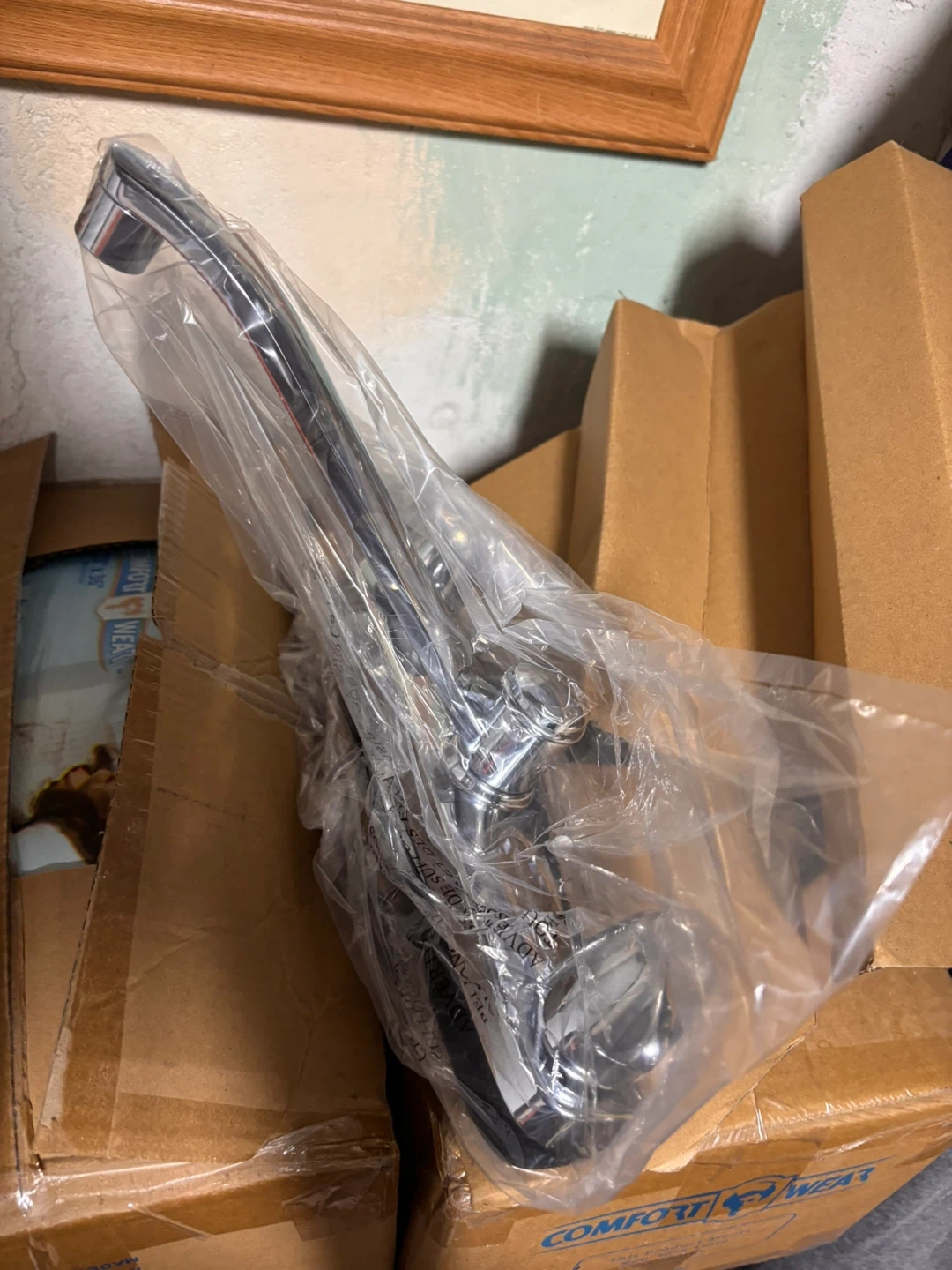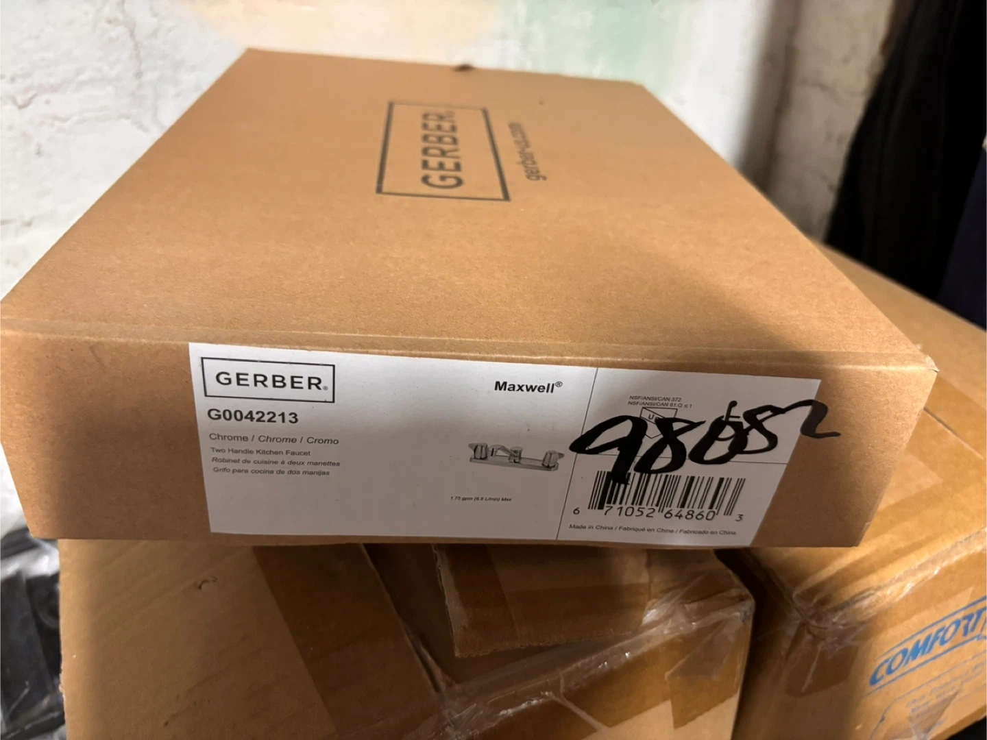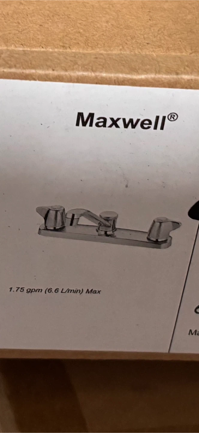 Selling a brand new Gerber Maxwell two-handle kitchen faucet in chrome! It's still in the original box and packaging. This faucet has a flow rate of 1.75 gpm (6.6 L/min) max. Perfect for upgrading your kitchen sink