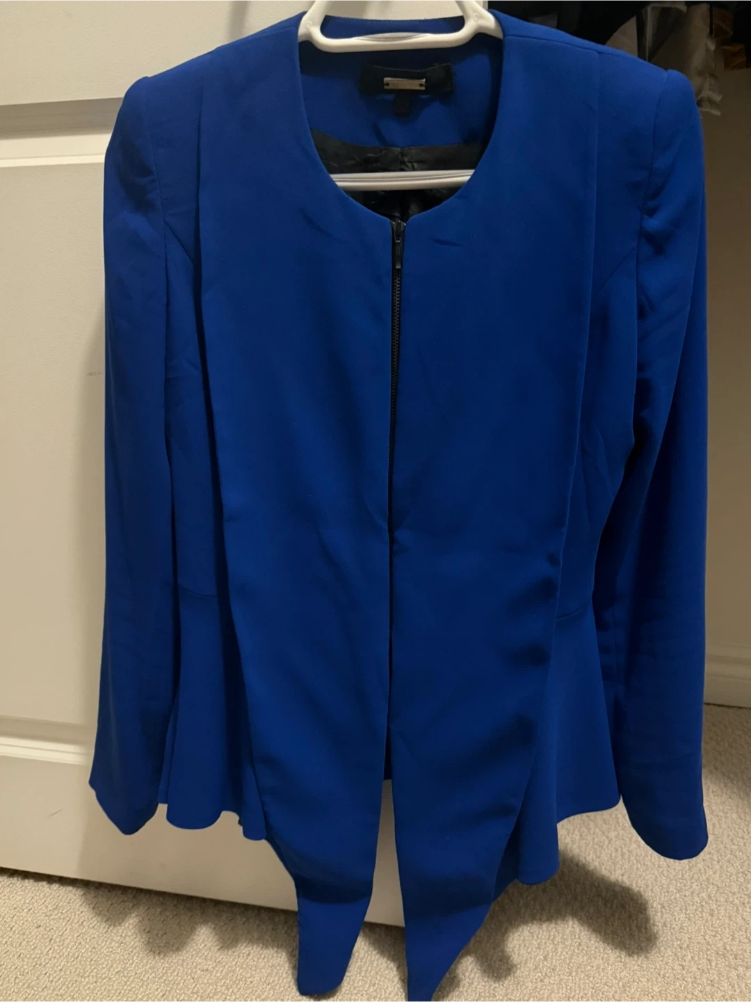 Selling a vibrant blue blazer from Le Chateau in a size medium. It's in great condition and ready to add a pop of colour to your wardrobe!