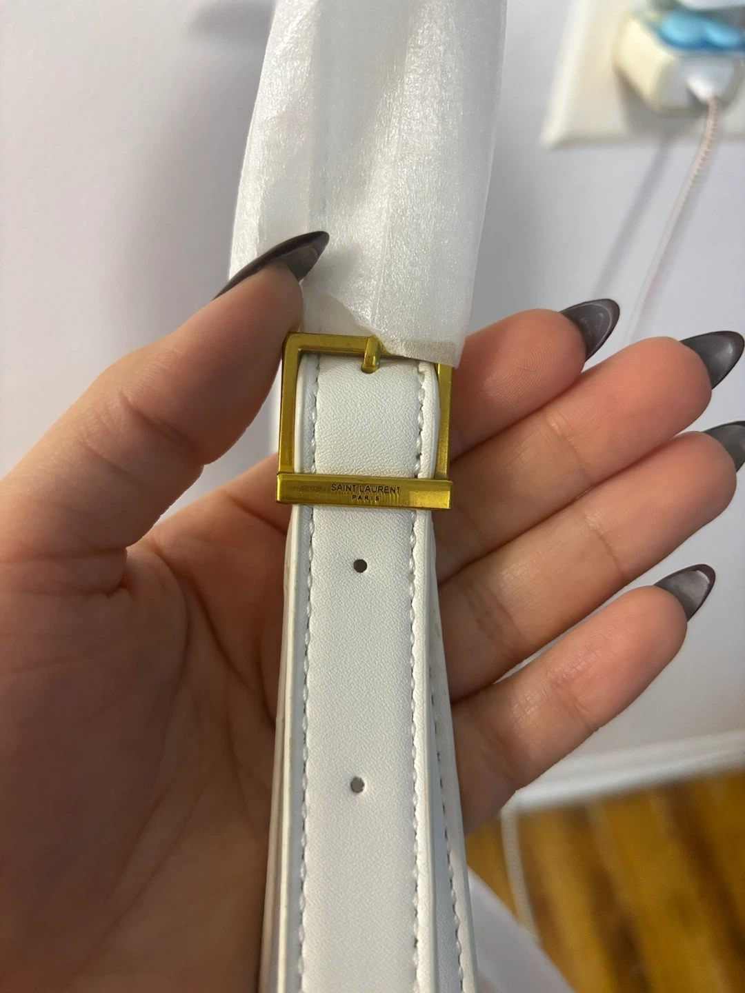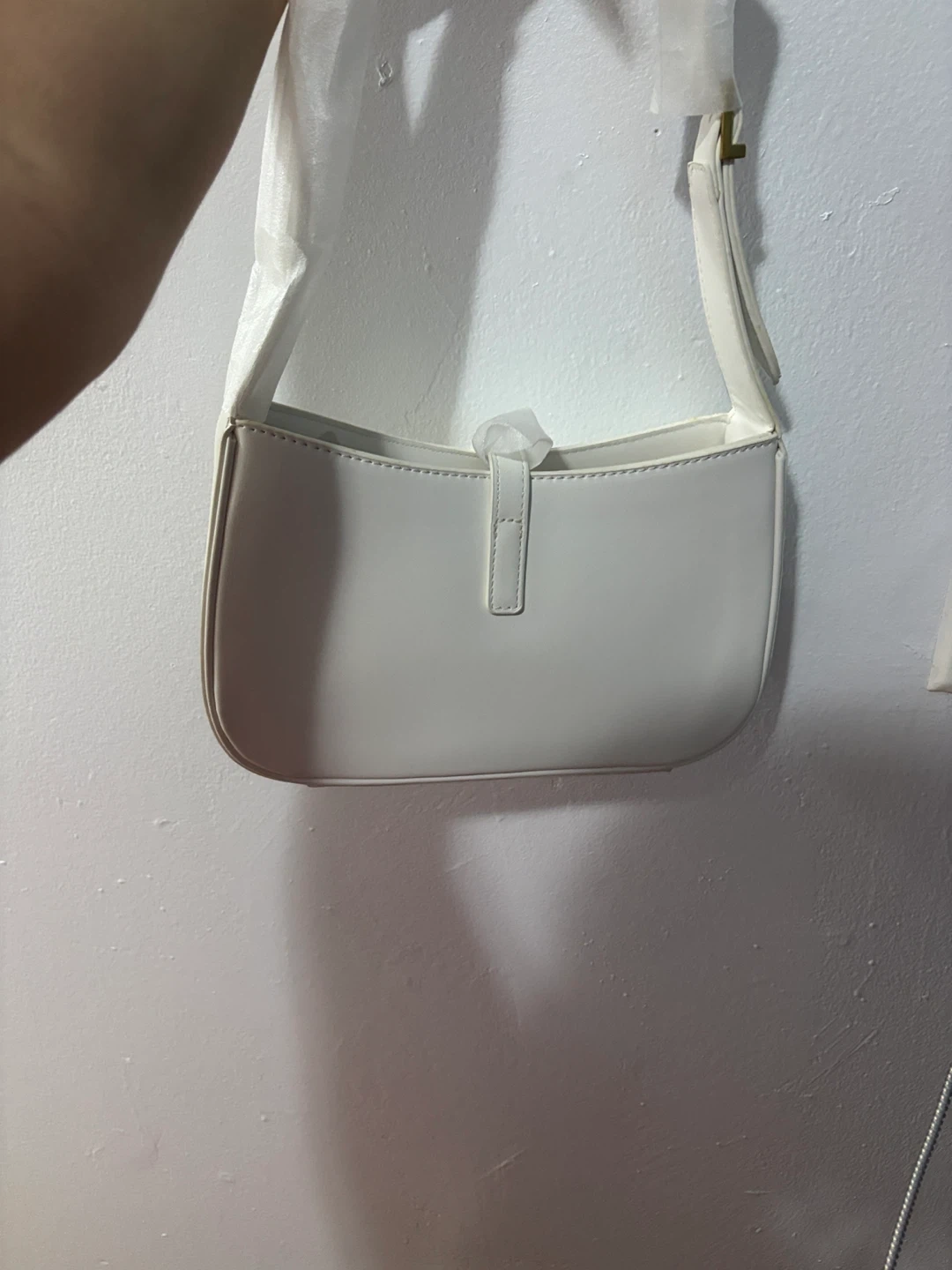 This is a brand new Saint Laurent hobo bag in white! It's a beautiful and stylish accessory that will complement any outfit. The bag features the iconic YSL logo and comes with its original packaging.