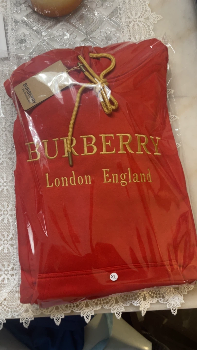 Burberry London England Slim Fit matching set! This set includes a red hoodie and matching sweatpants with the Burberry logo. Perfect for lounging or a casual day out! Size XL Unisex
