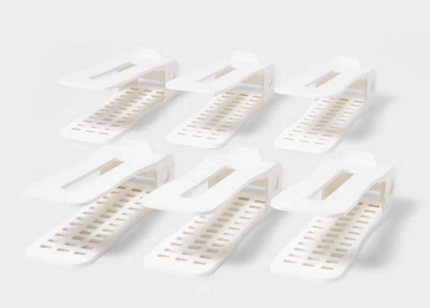 I'm selling a set of white adjustable shoe organizers! These are great for maximizing space in your closet or on your shoe rack. Perfect for keeping your shoes neat and tidy! 14counts.