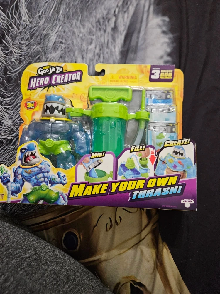 Get ready to create your own Thrash with this Goo Jit Zu Hero Creator kit! It includes everything you need to mix, fill, and create your own stretchy hero. Perfect for kids who love action figures and creative play.