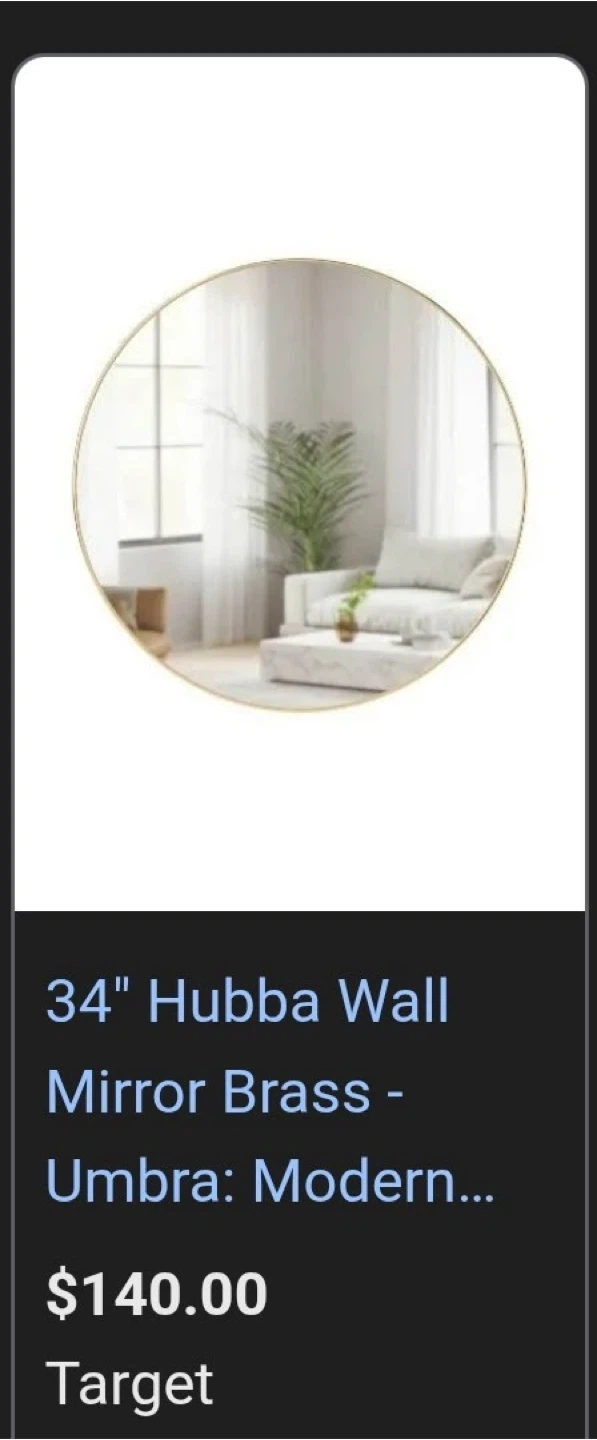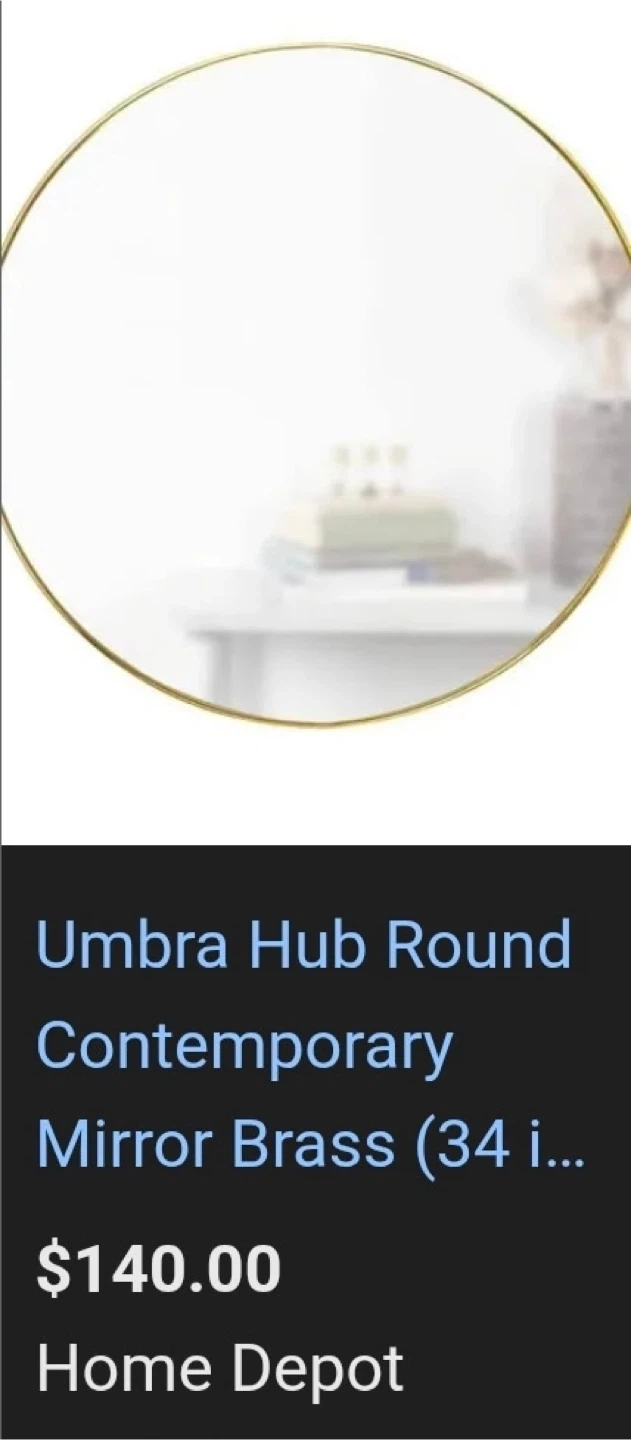Selling a 34-inch Umbra Hubba round wall mirror with a brass frame. It's a stylish and modern piece that will add a touch of elegance to any room. Originally price for $140! Currently selling for price at target and Home Depot