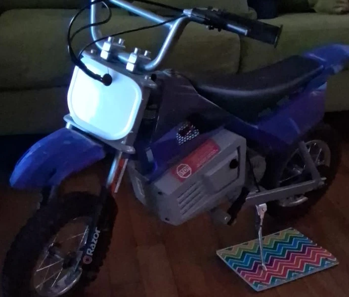 Selling a Razor MX350 Dirt Rocket electric bike! It's in good condition and ready for some fun rides. Perfect for kids who want to experience the thrill of off-road biking in a safe and controlled way. The bike is designed to be lightweight and portable, making it easy to transport to different locations