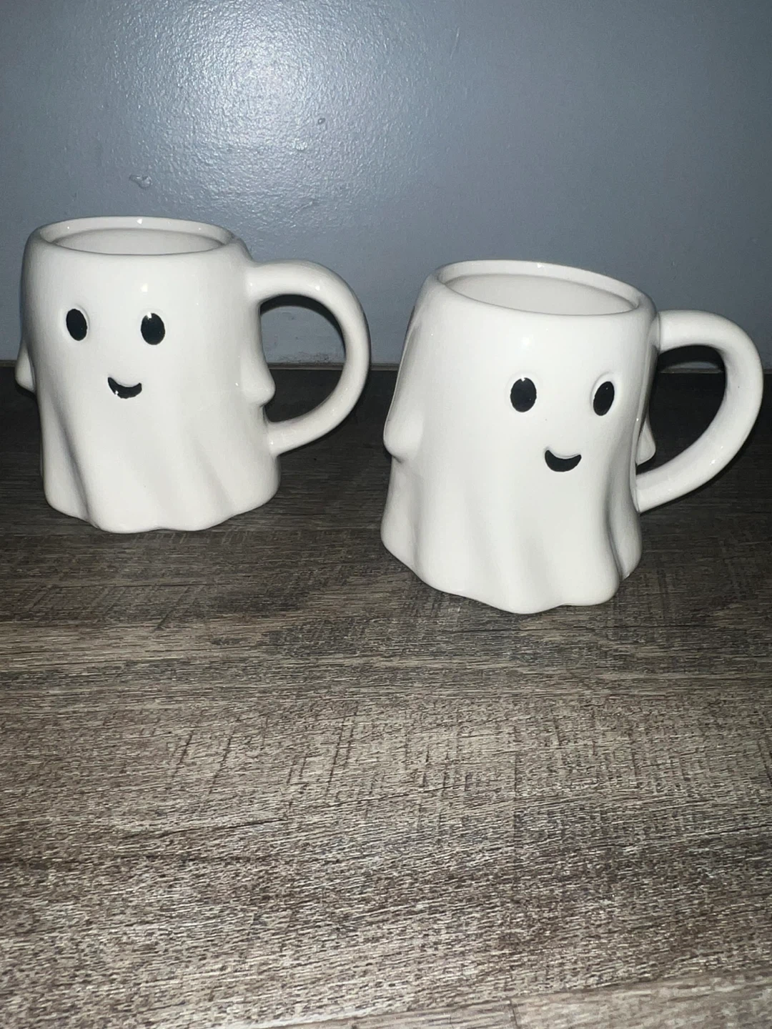 Selling a set of two adorable ghost mugs! They're in great condition and ready to add some spooky charm to your kitchen or coffee bar