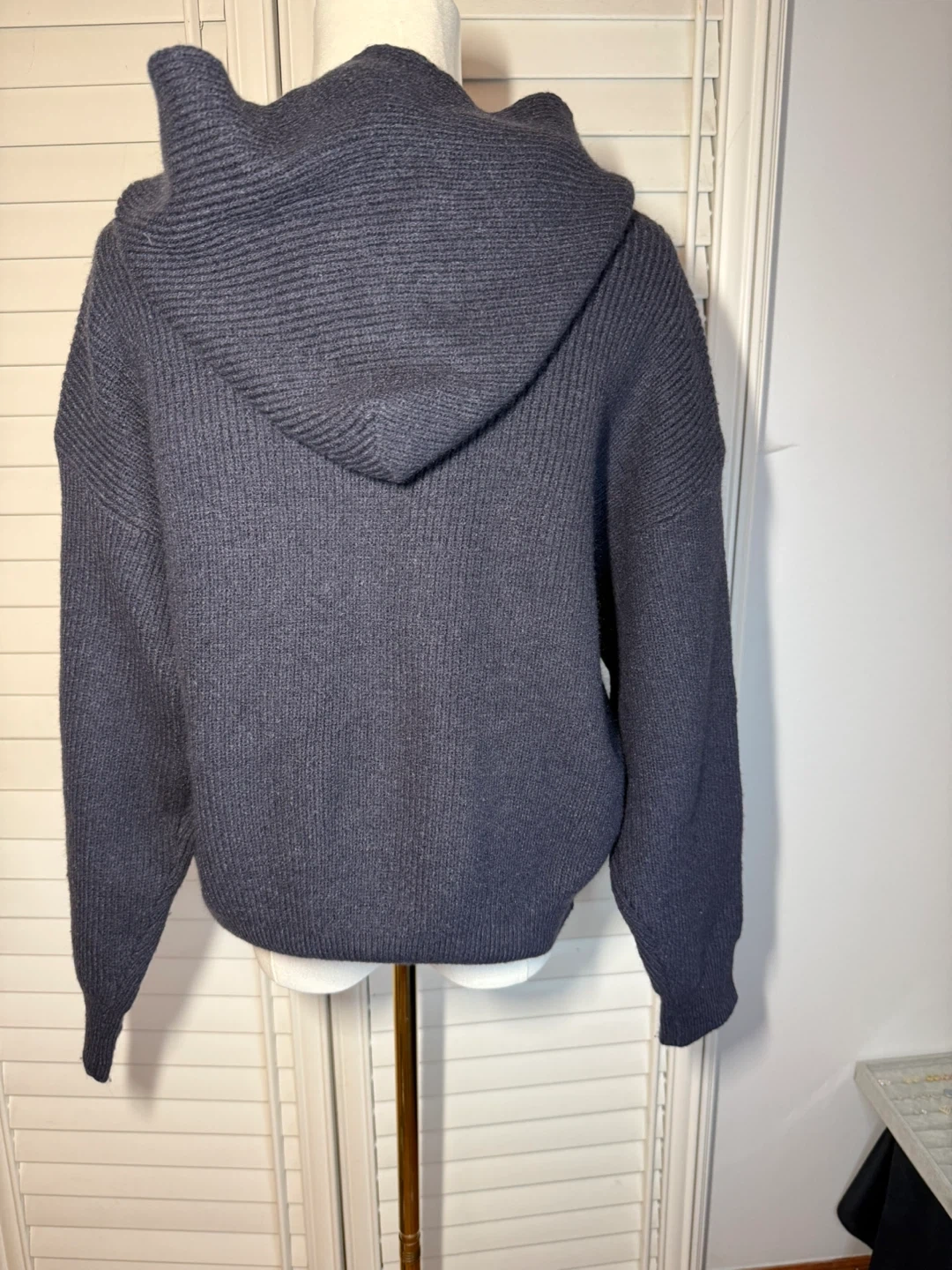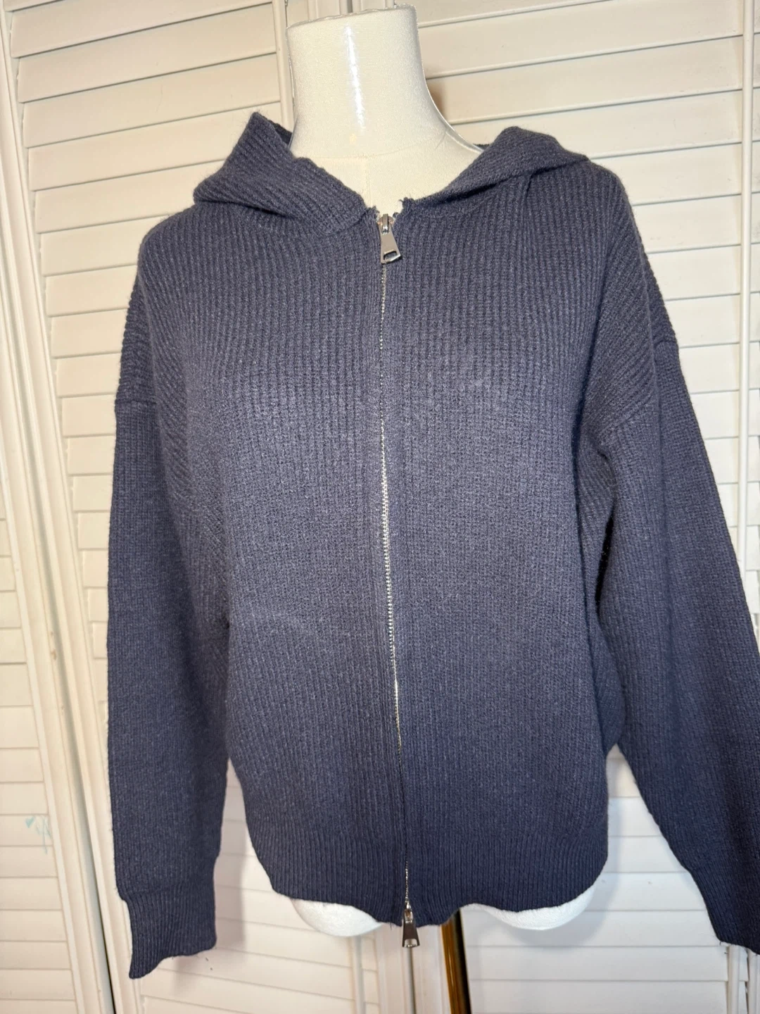 Cozy up in this stylish hooded knit sweater! It features a full zip-up front and a comfortable, relaxed fit. The charcoal colour is super versatile and perfect for layering during those chilly Canadian days