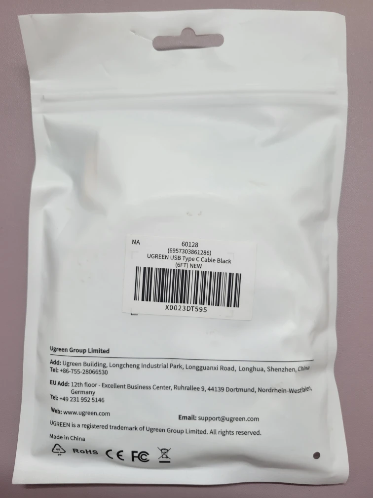 Selling a brand new UGREEN USB Type-C Cable in white. It's still in its original packaging! Length: 6 feet.