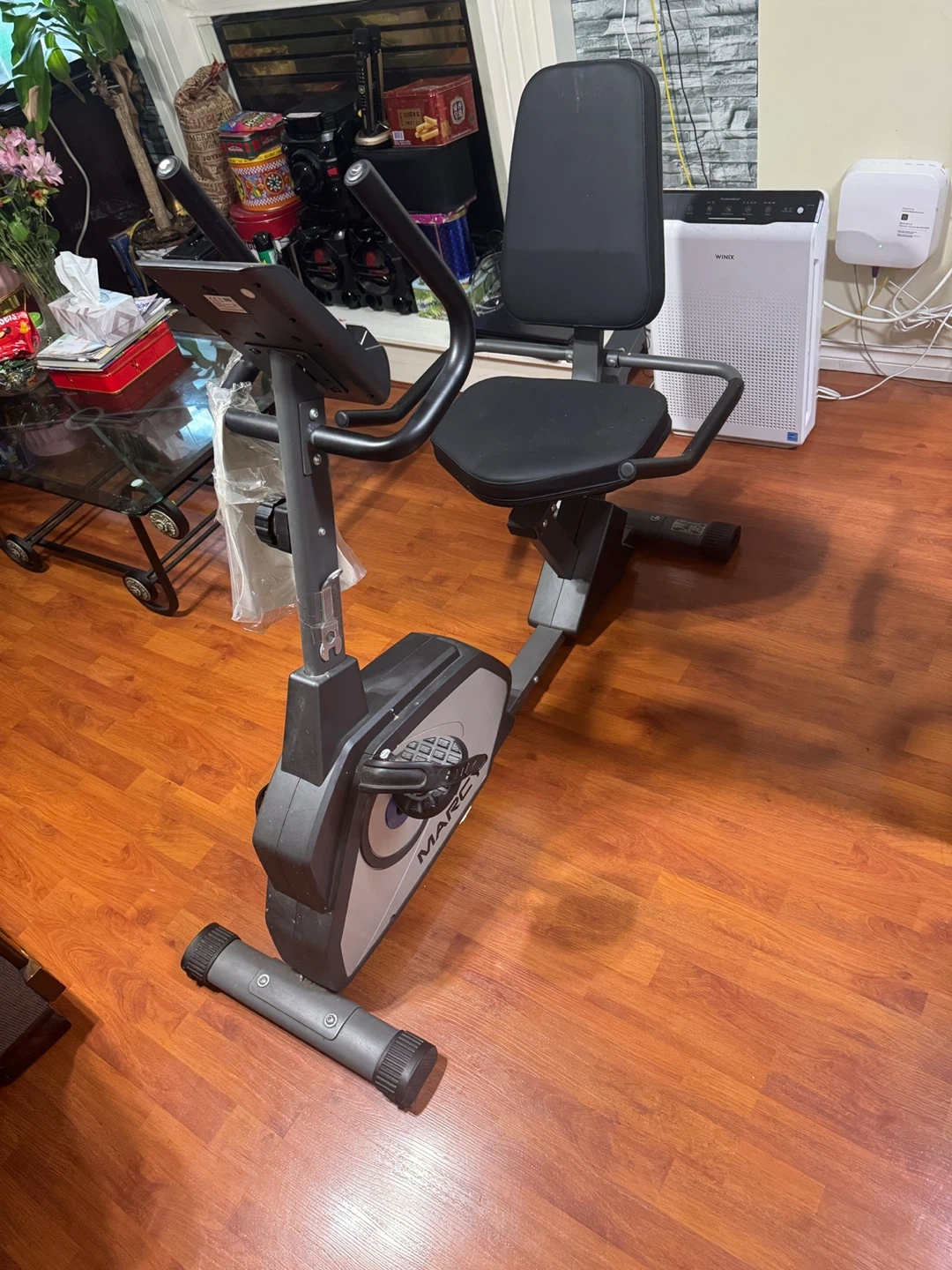 Selling a Marcy recumbent exercise bike! It's in good condition and ready for your home gym. Perfect for getting your cardio in without putting stress on your joints. It has a comfortable seat and backrest, and an easy-to-read display to track your progress