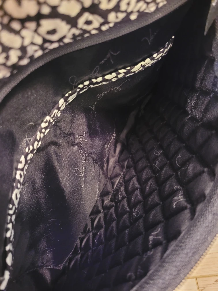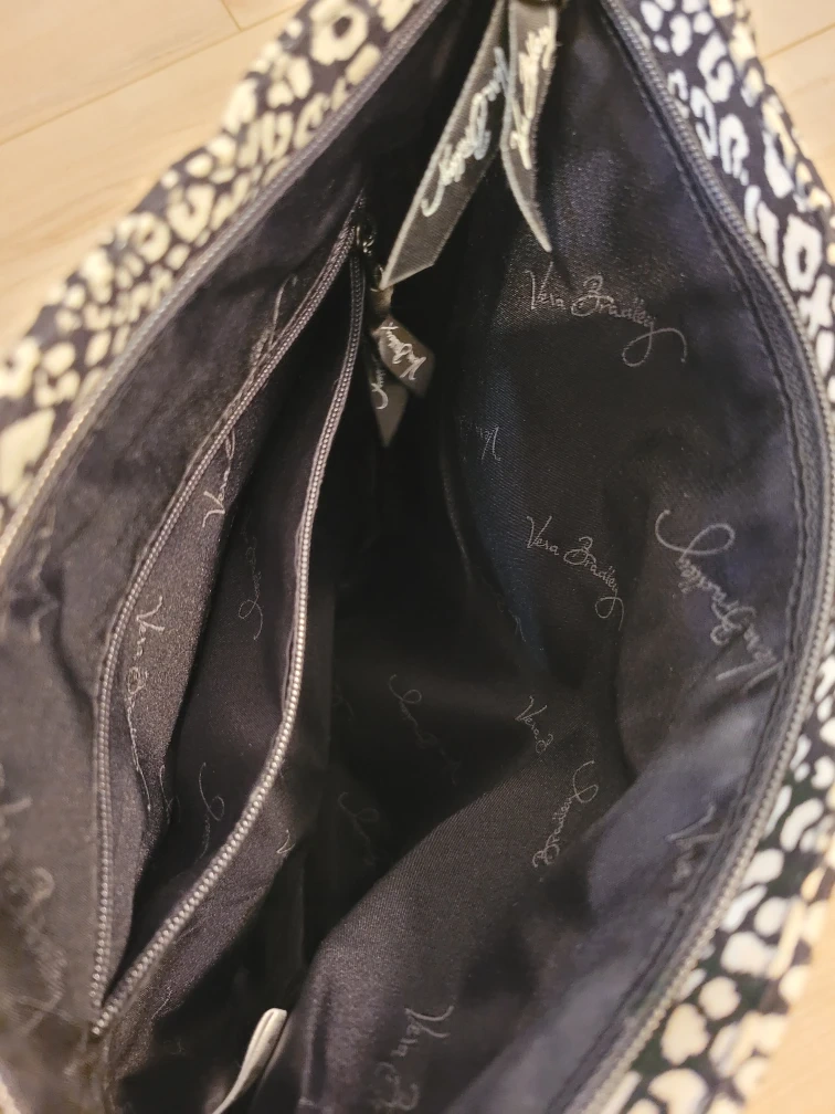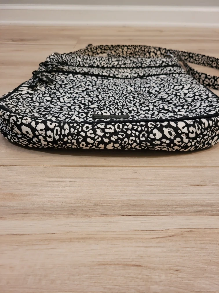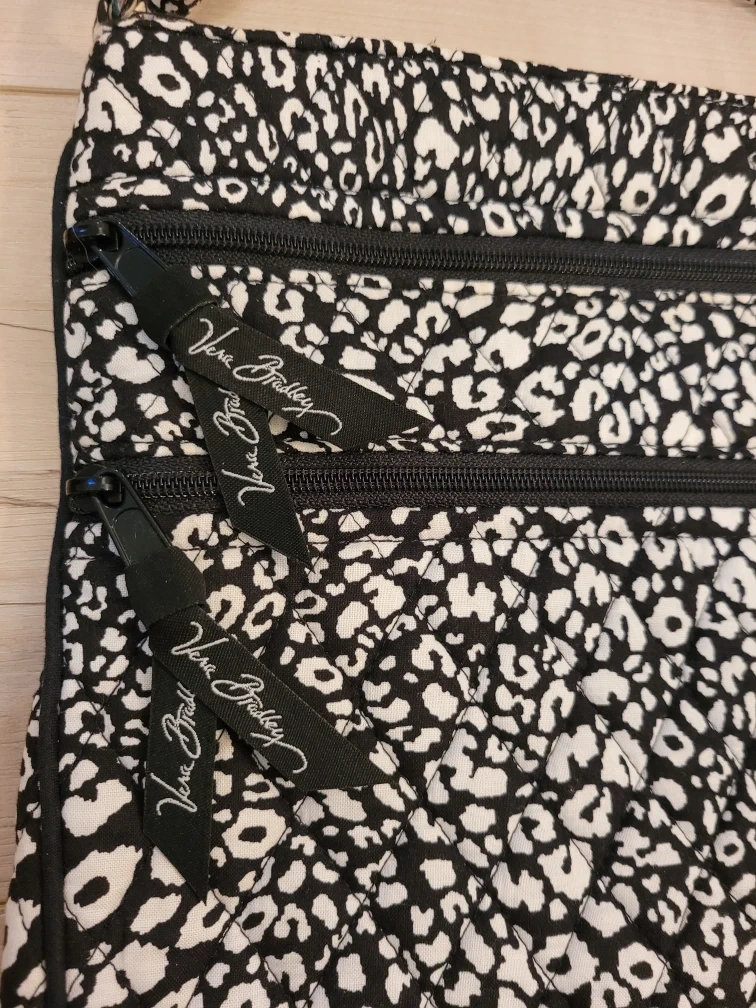Vera Bradley Black White Cheetah Print Crossbody Bag Adjustable Strap in very good pre-loved condition. I just see one not very noticeable area with a little gray coloring. See Close up photo for condition.