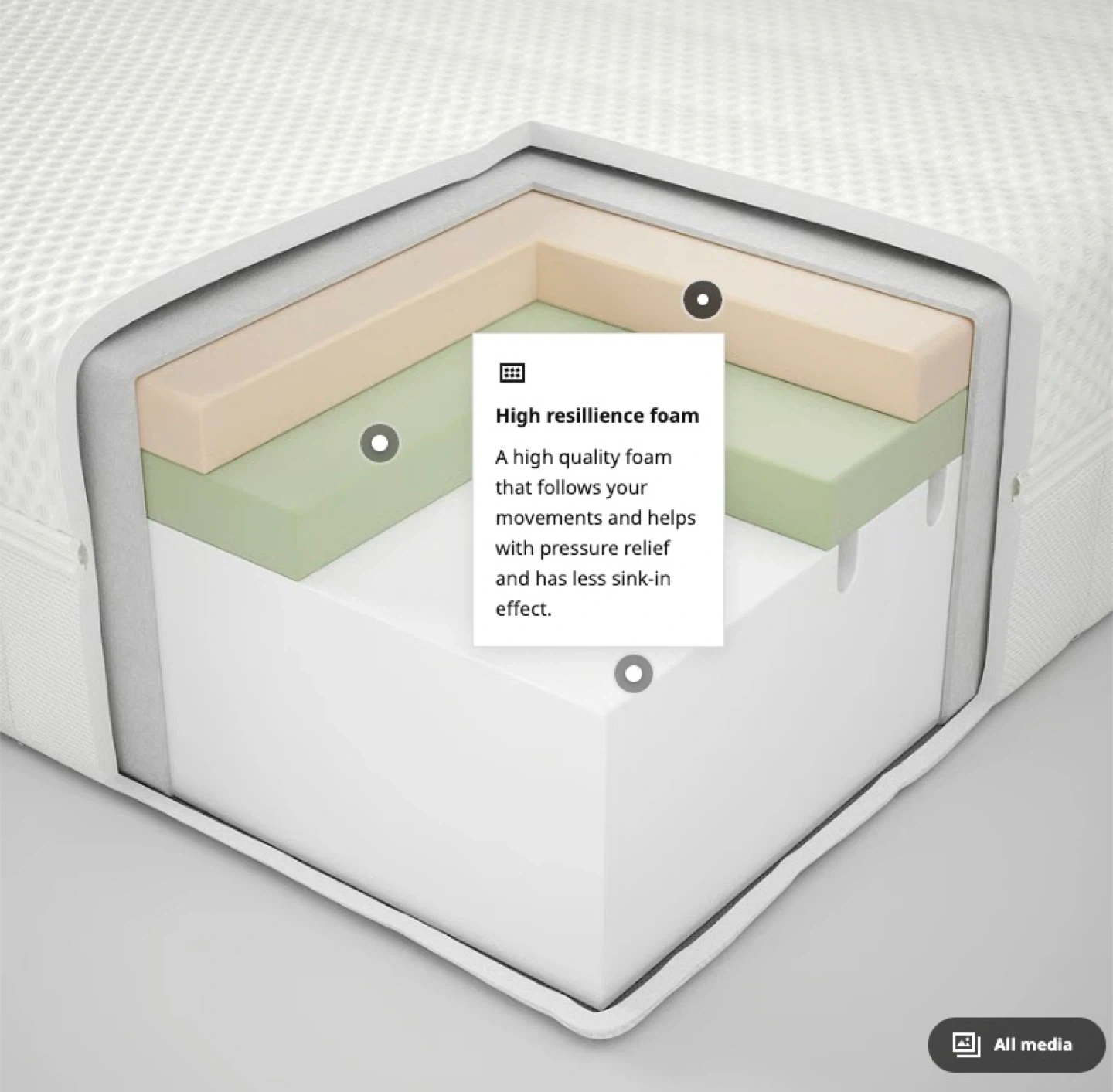 Selling an IKEA AKREHAMN foam mattress in firm/white, Queen size. It features high resilience foam that follows your movements and helps with pressure relief for less sink-in effect. Originally priced at $349.