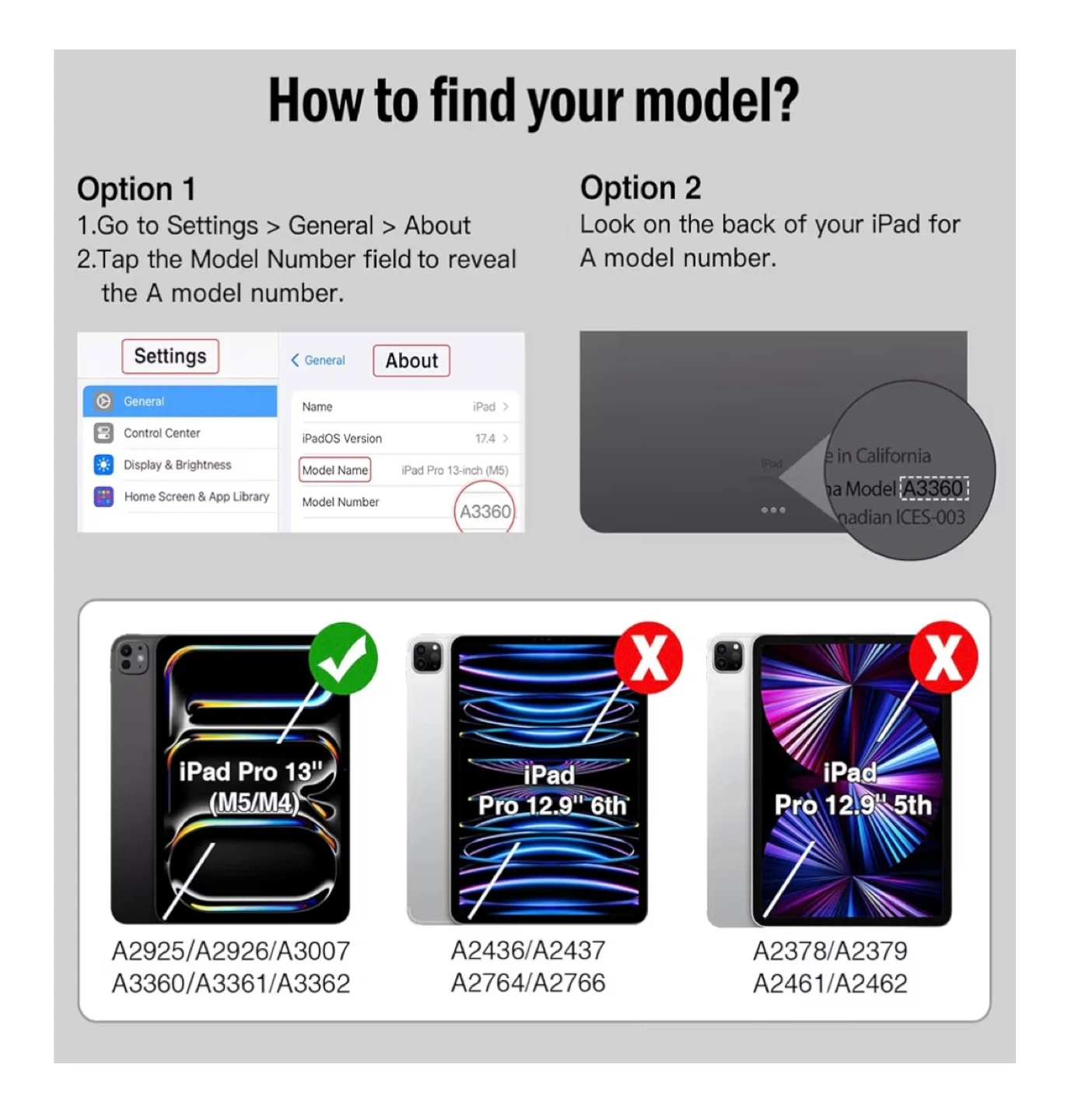 -2025 iPad Pro 13 inch Case M5 (Model Number:A3360/A3361/A3362) and