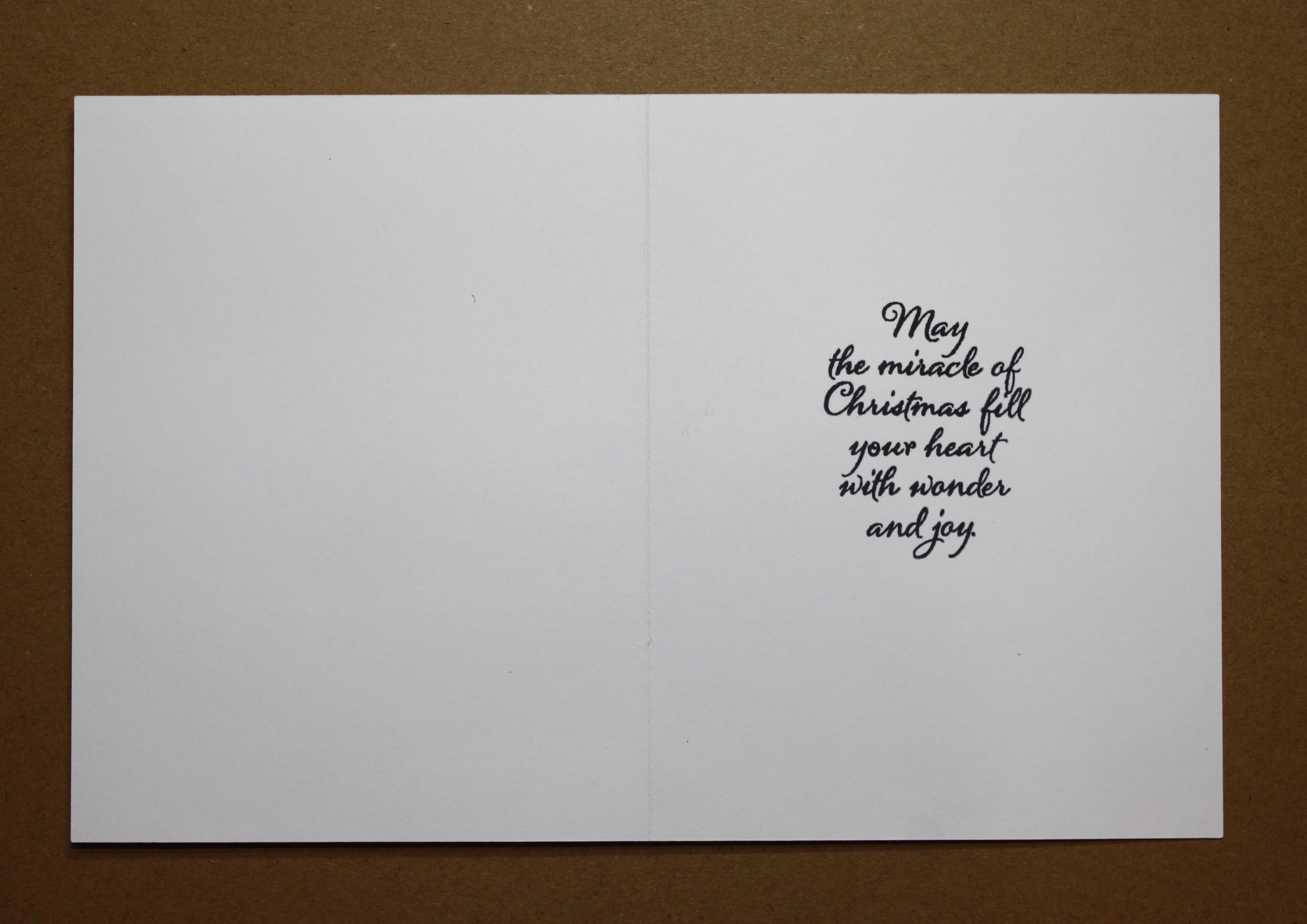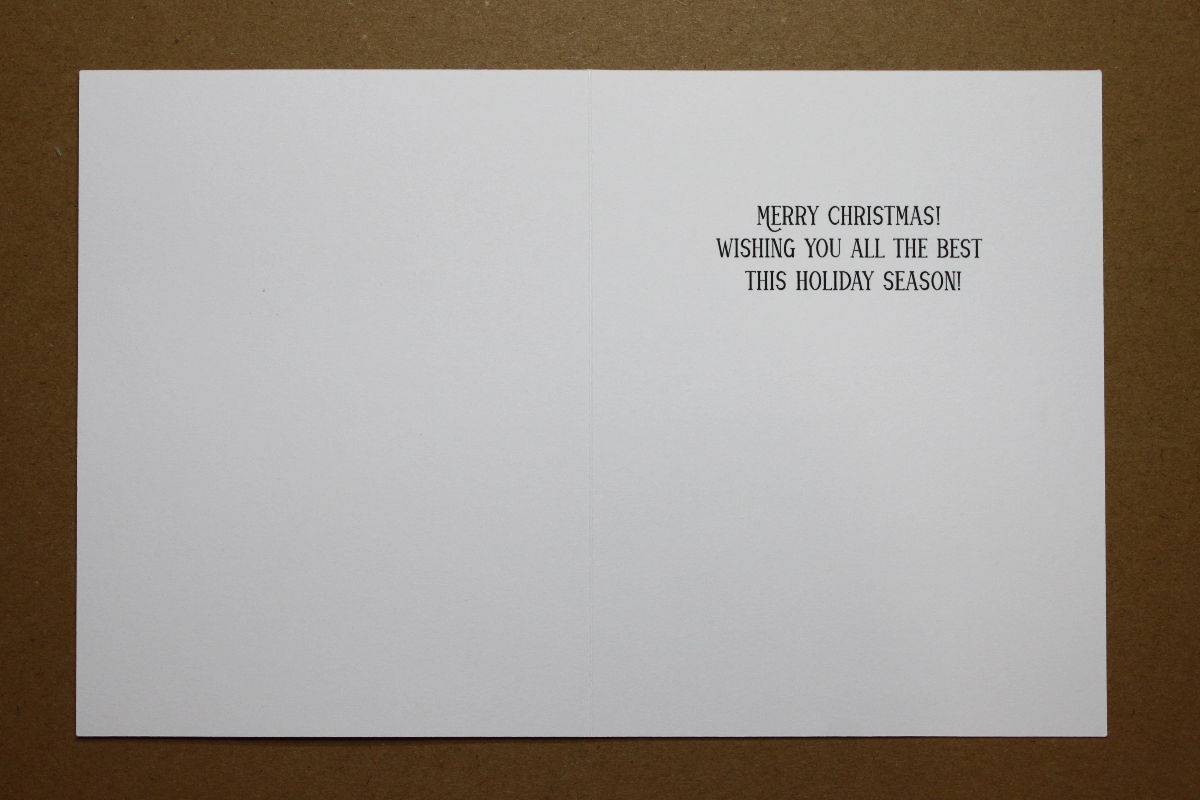 Each card comes individually packaged with an A2 envelope for mailing and with a message pre-printed (or stamped) on the inside (messages shown).