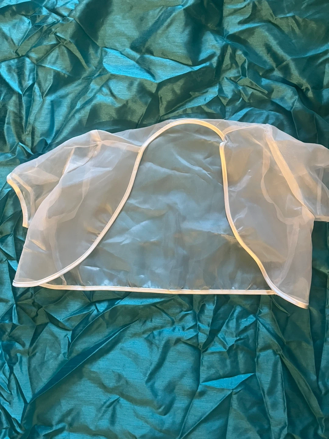 Selling a beautiful white dress that comes with a matching bolero! It's in great condition and would be perfect for a special occasion. The dress features delicate details and a lovely design.