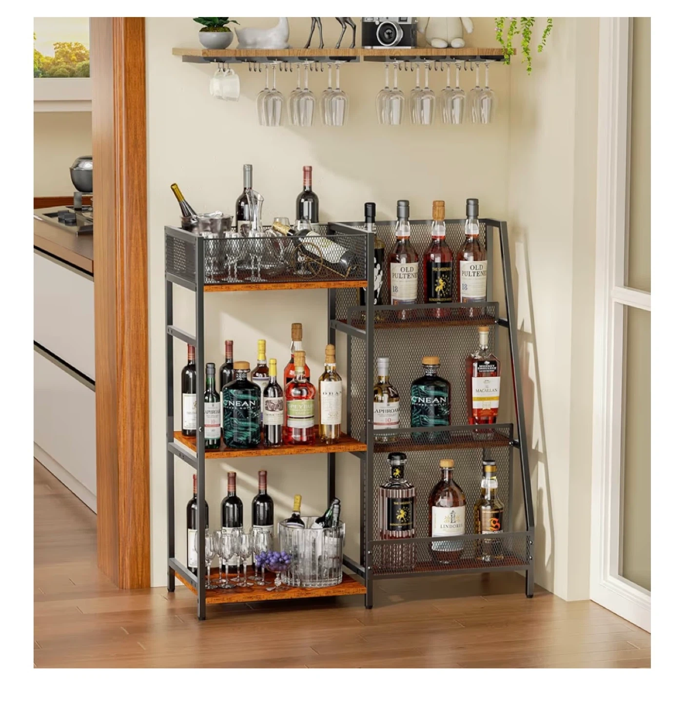Liquor Stand, 6-Tier Stepped Bar Cabinet Freestanding Floor for Whiskey & Wine Bottles, Versatile Corner Bar Stand with Fences, Mini Liquor Cabinet Perfect for Home Bar or Kitchen.