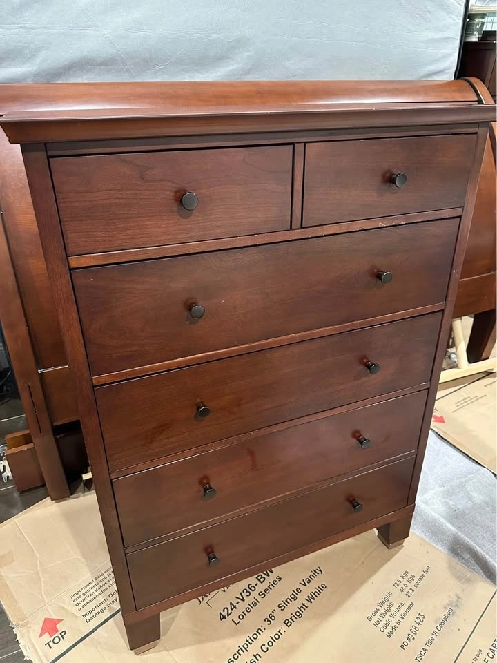 Pottery Barn Valencia mahogany bedroom set. Purchased this high-quality, real wood furniture directly from Pottery Barn several years ago. Selling because room is better suited for a queen sized bedroom set.
