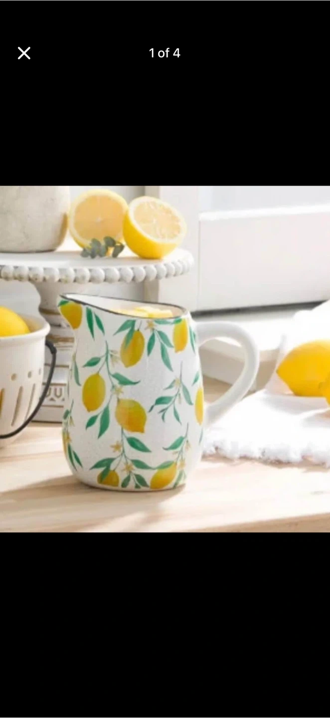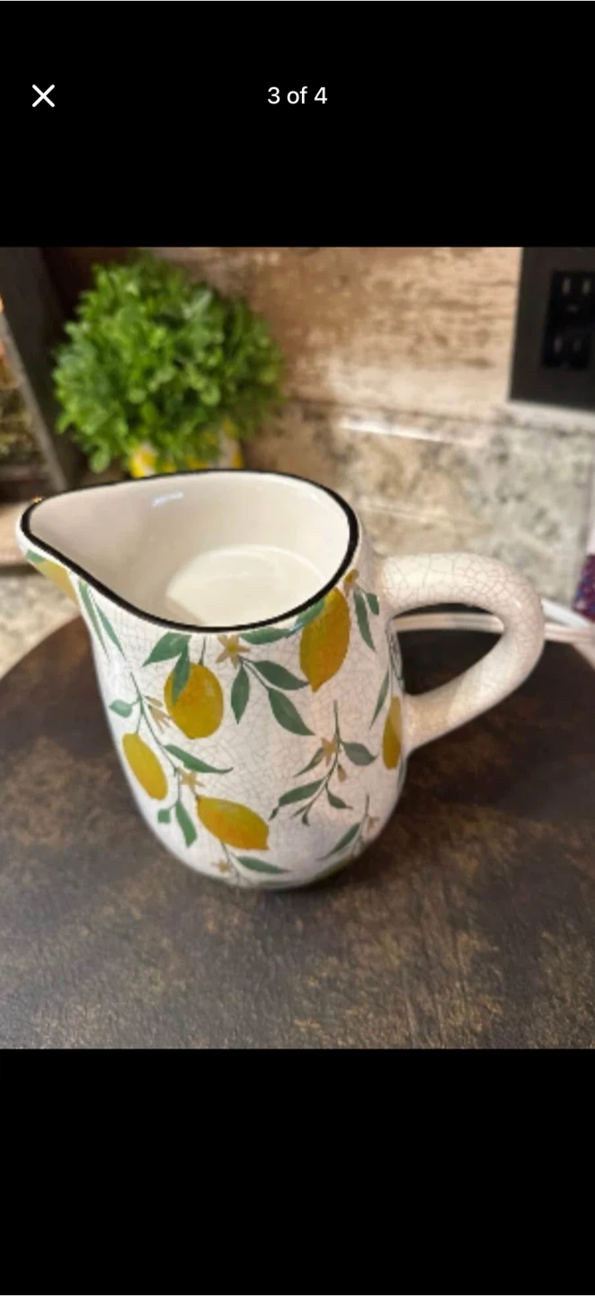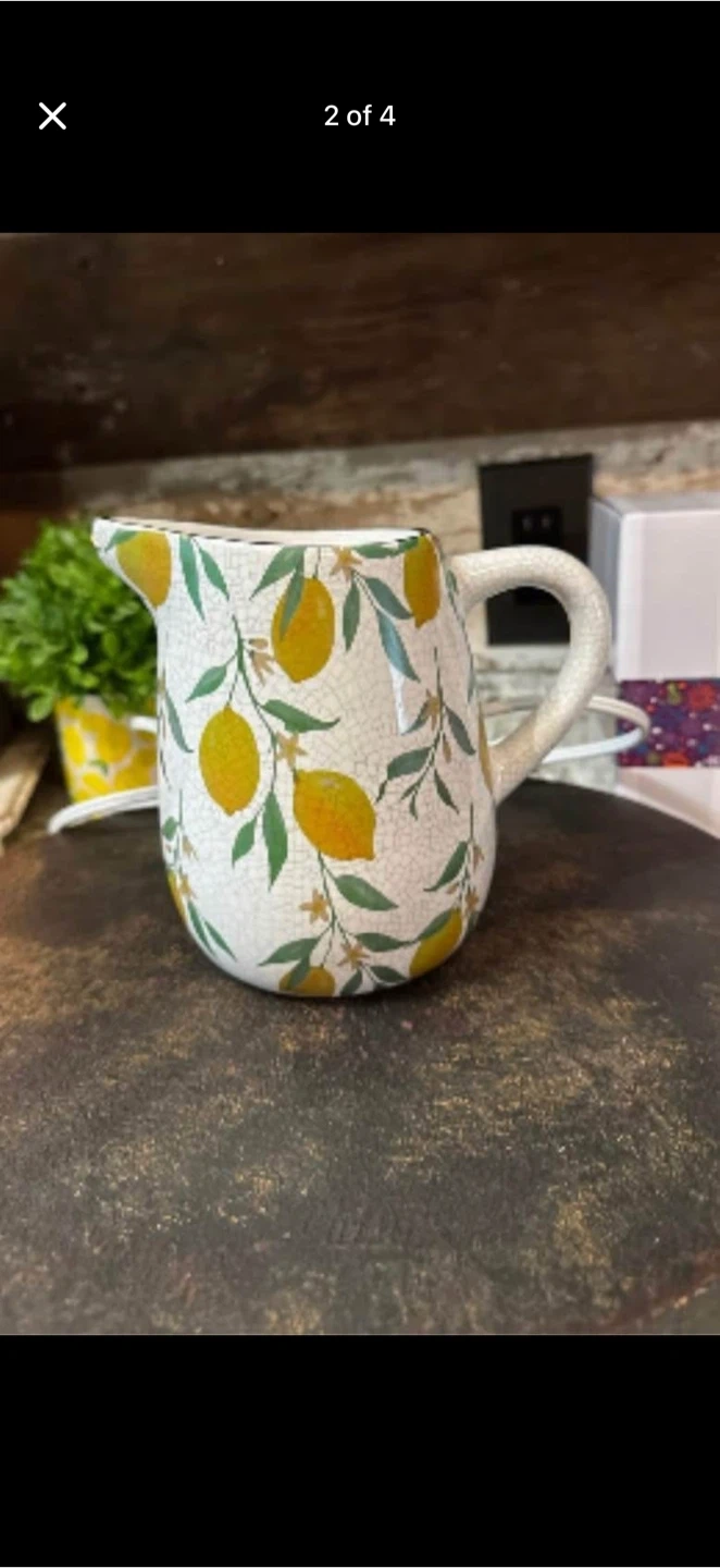 I'm selling a Scentsy Lemon Grove pitcher! It's in great condition and comes with the original box. This pitcher features a delightful lemon and leaf design, perfect for adding a touch of summer to your home decor