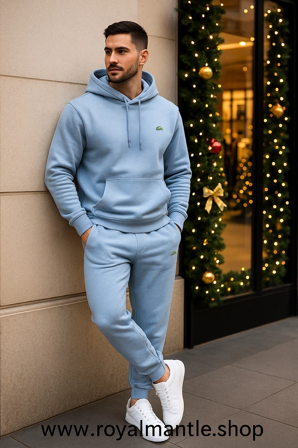 Selling a Lacoste hoodie and sweatpants set in a beautiful light blue color! The set features the iconic Lacoste logo. The MSRP is $270. Is so good and comfy aUnisex size S