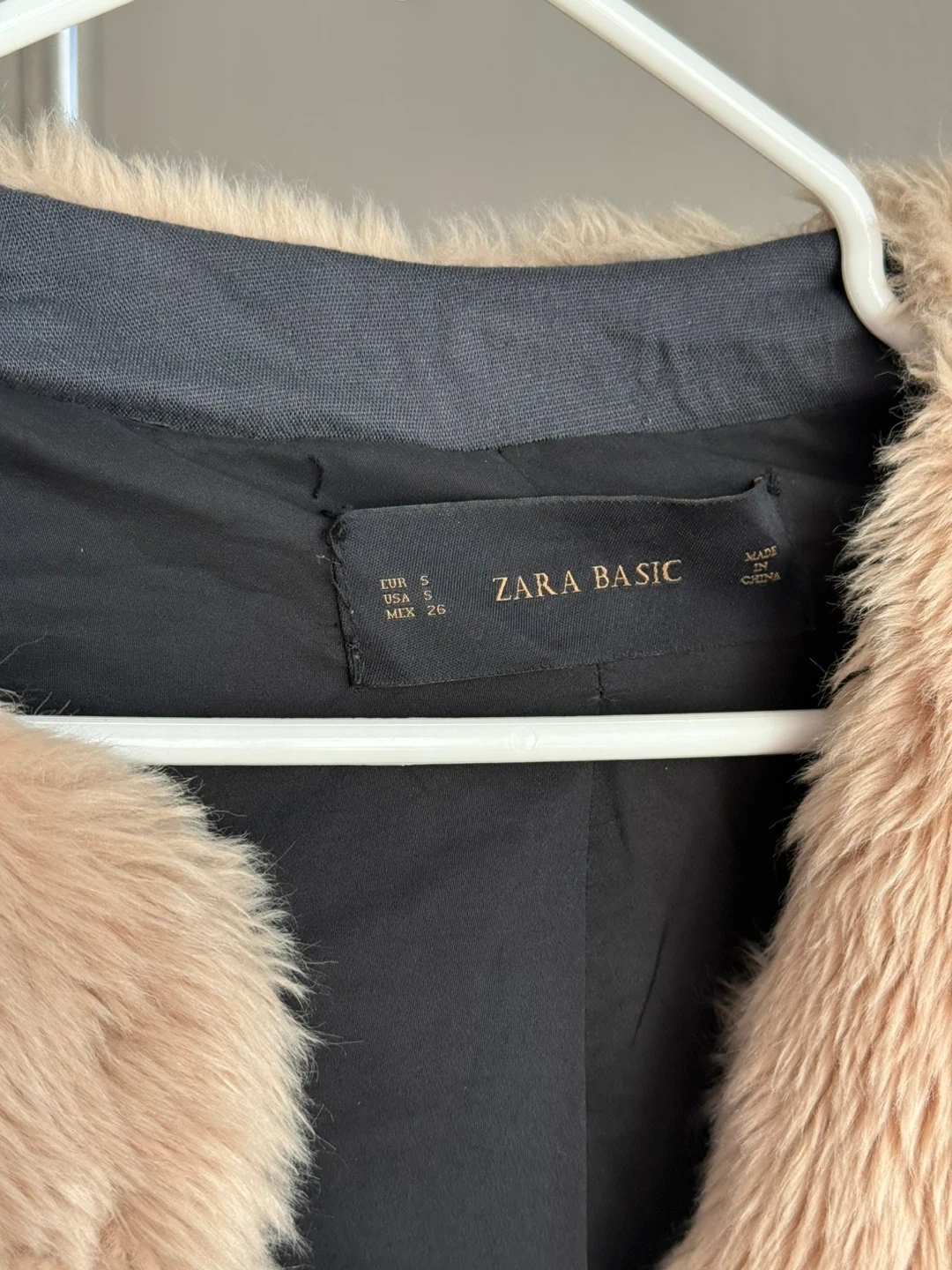 Selling a Zara Basic faux fur coat in tan! Size S — small sign of wear in the inner lining