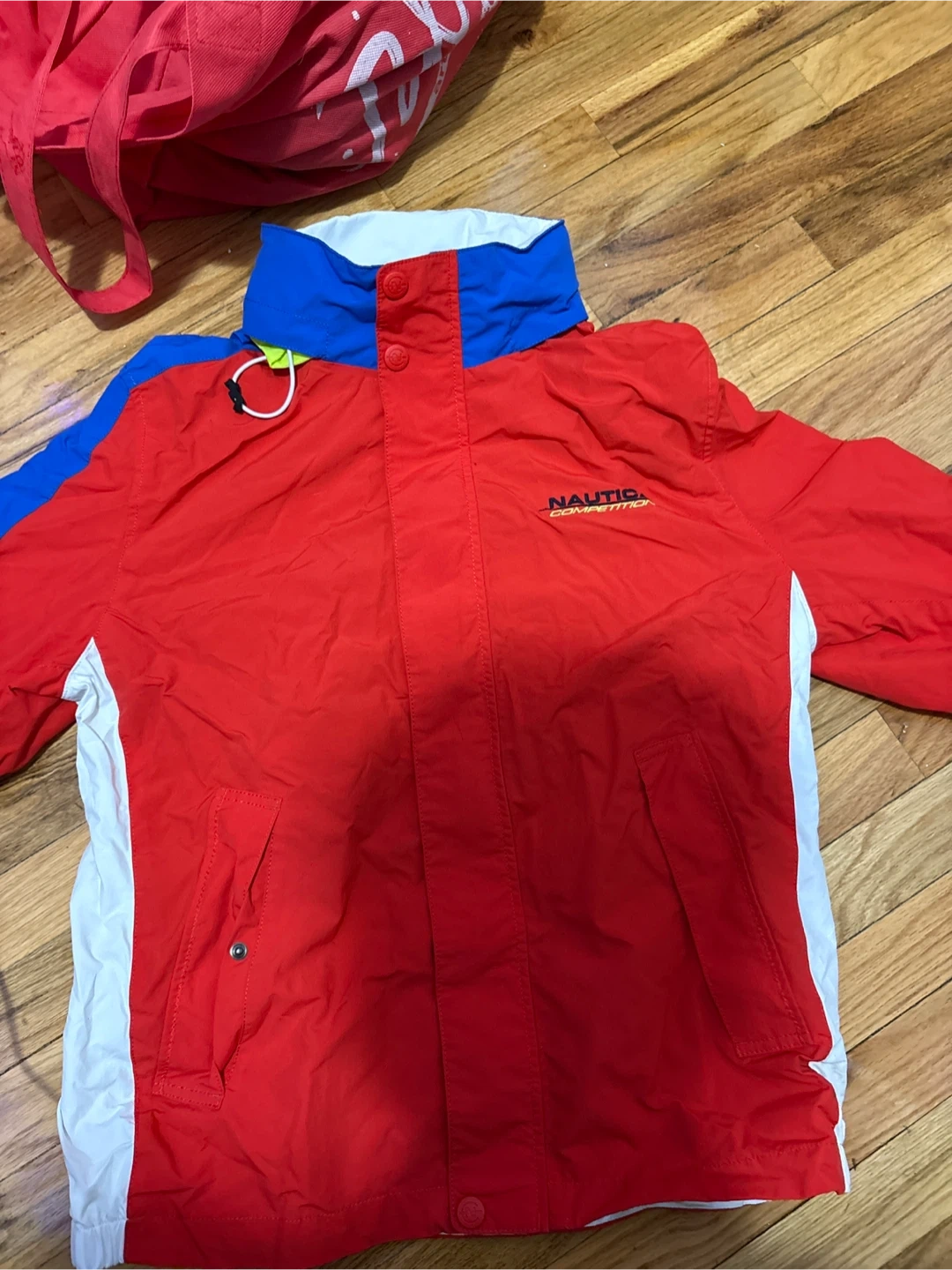 Selling a Nautica Competition jacket in size M. The jacket features a vibrant red, white, and blue color scheme. Perfect for adding a pop of color to your wardrobe!