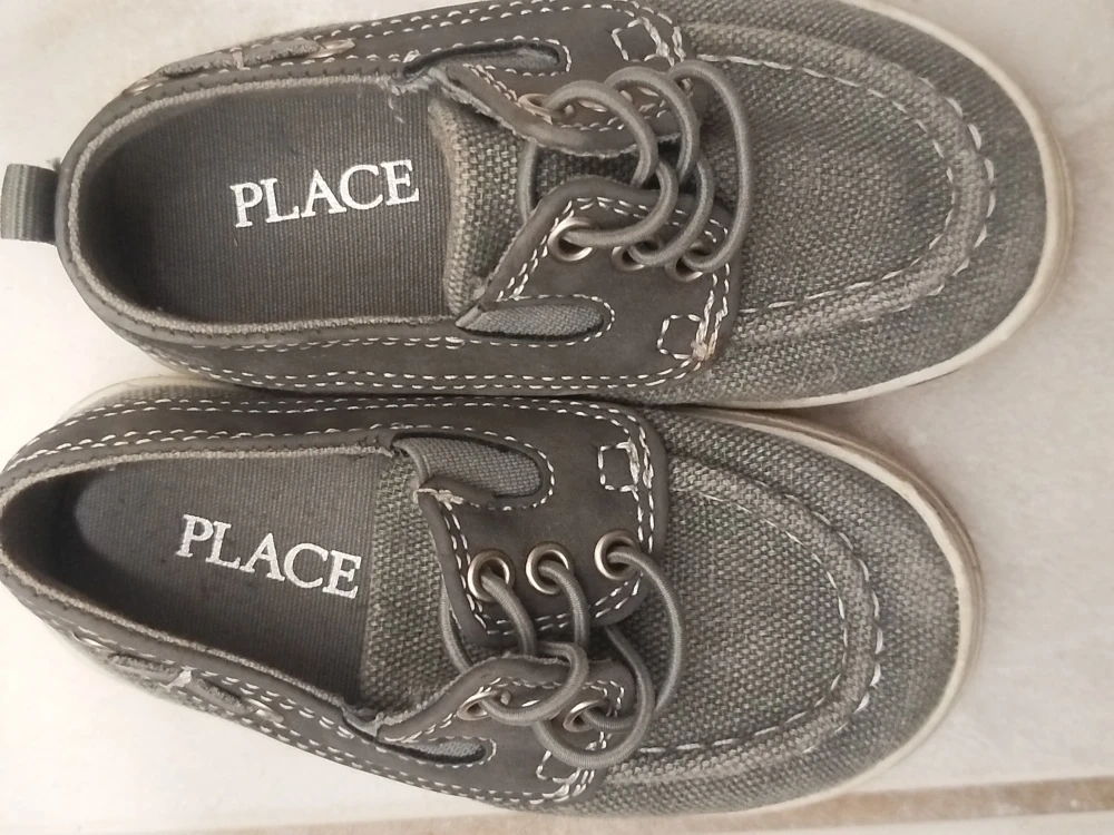 Selling a pair of The Children's Place boat shoes in grey! They're in great condition and are a size 6.