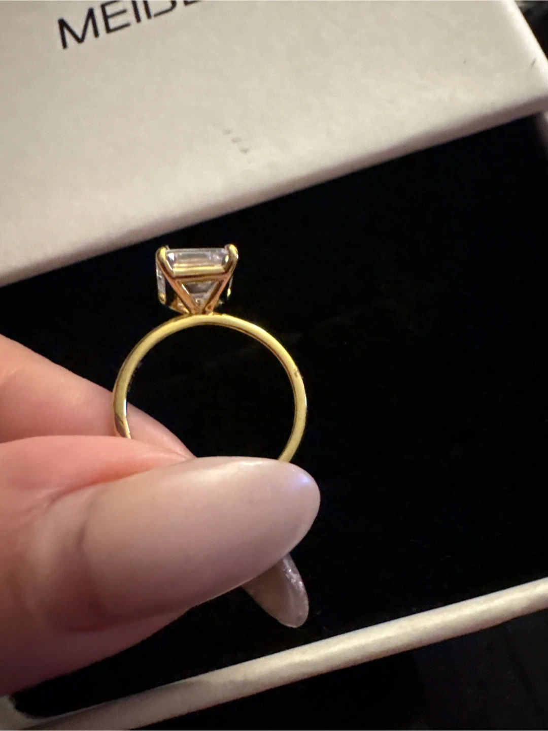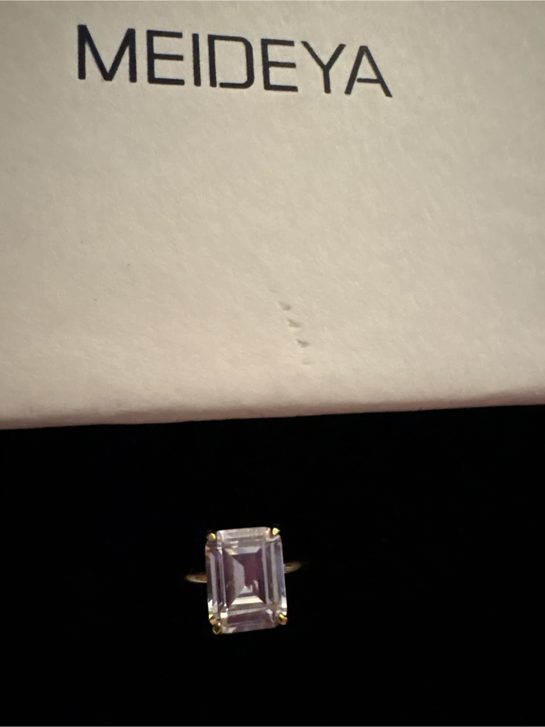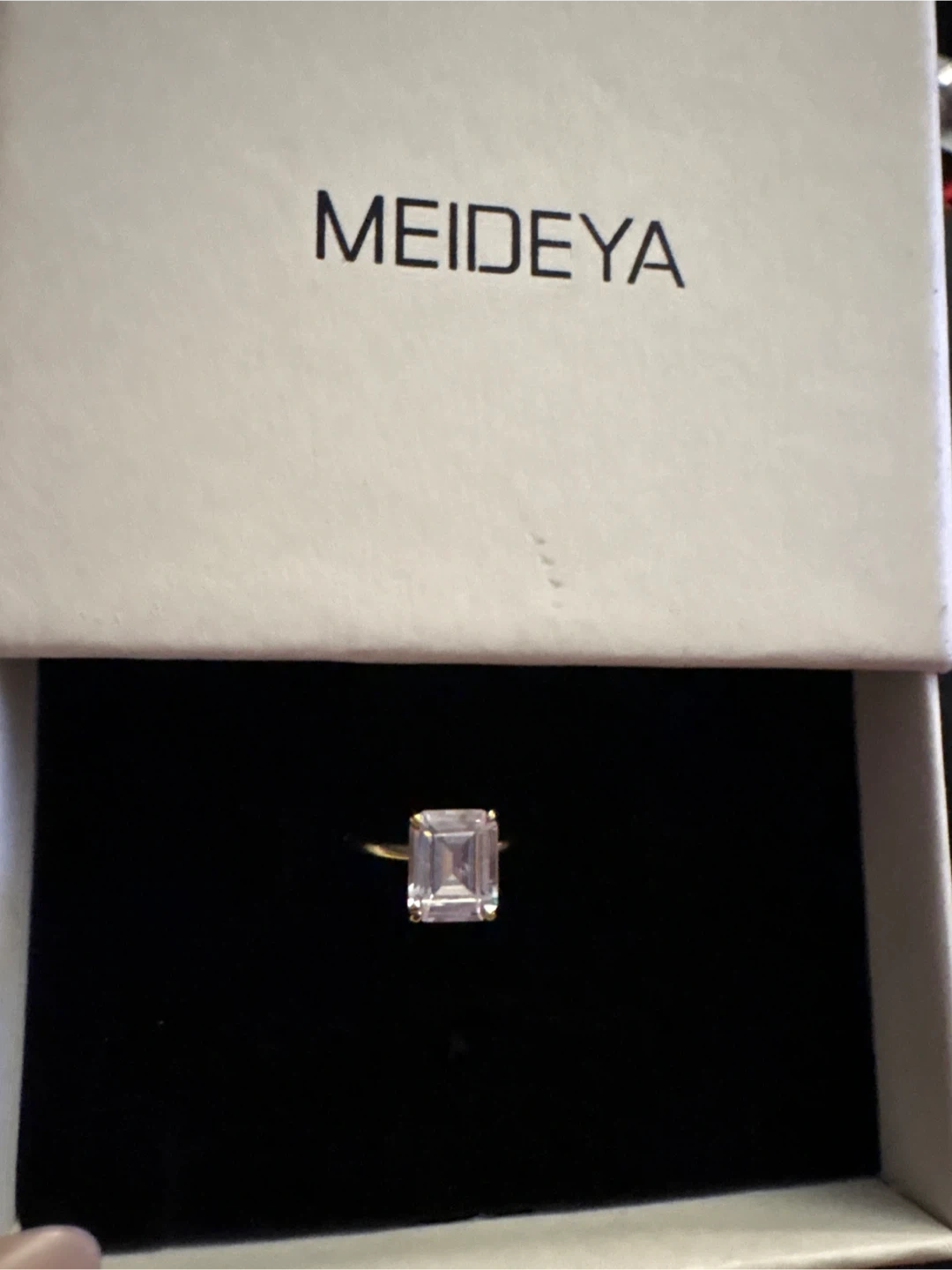 Selling a MEIDEYA ring. It comes with the original box. The ring features a large, emerald-cut stone. It's New