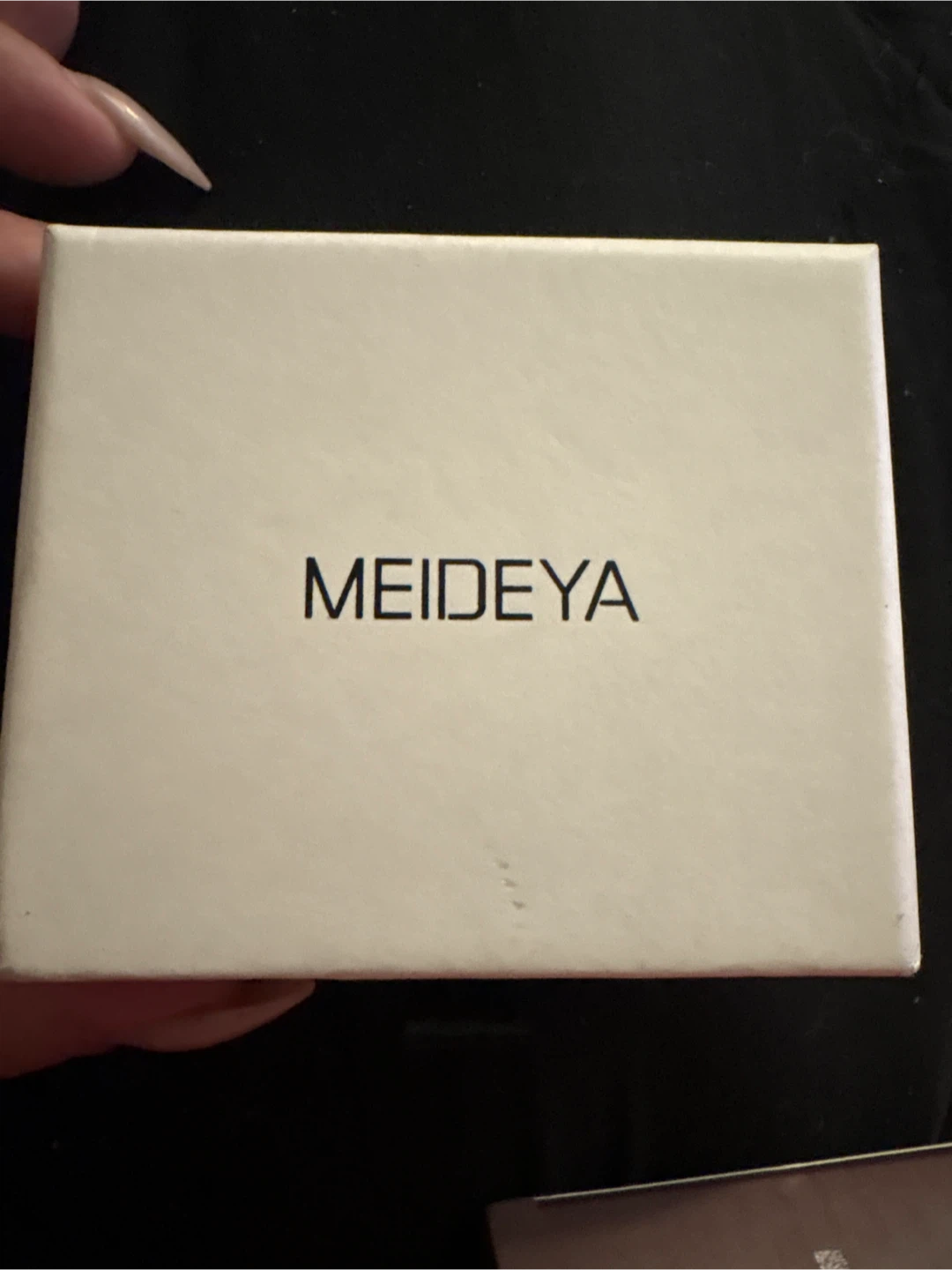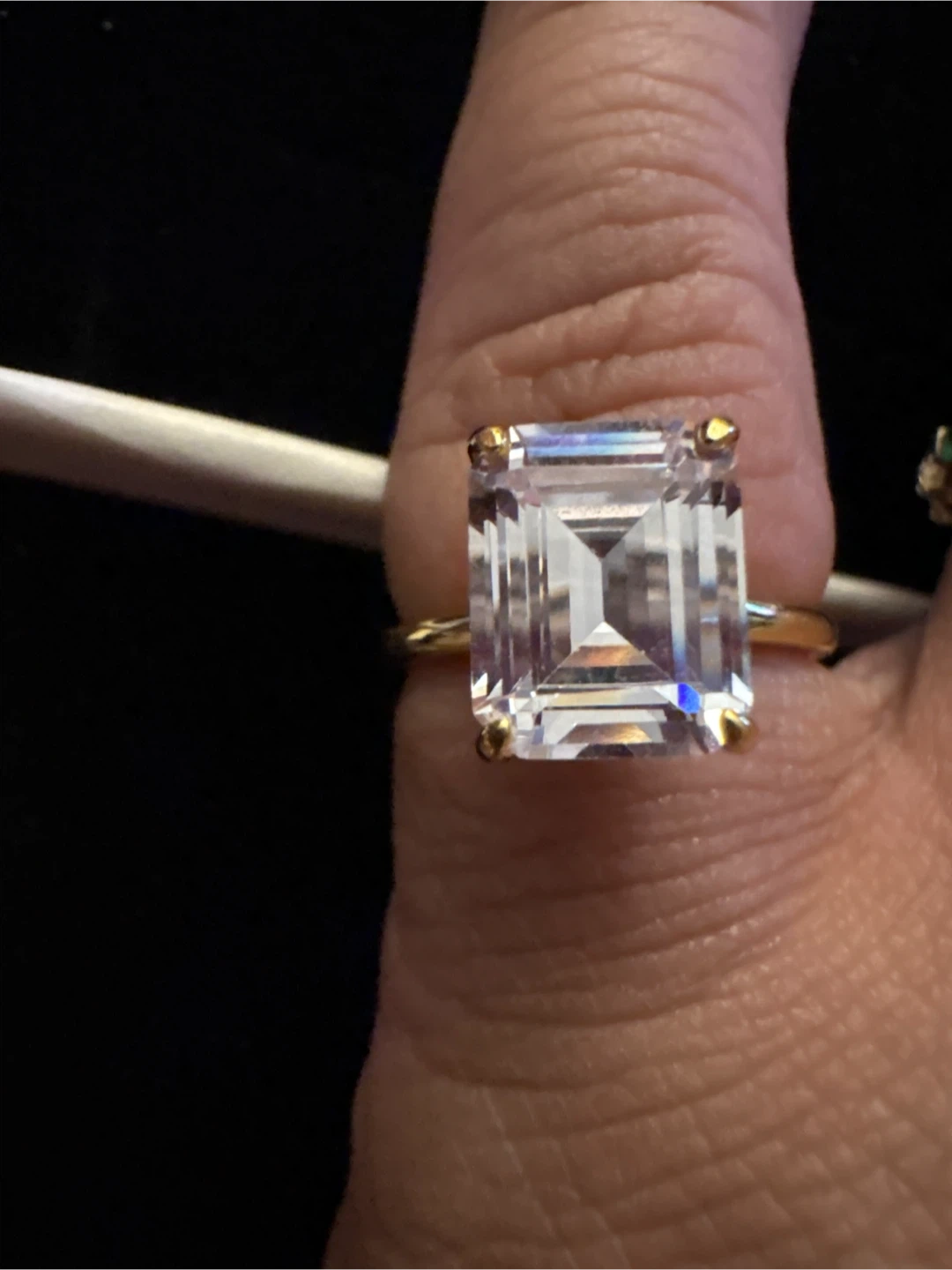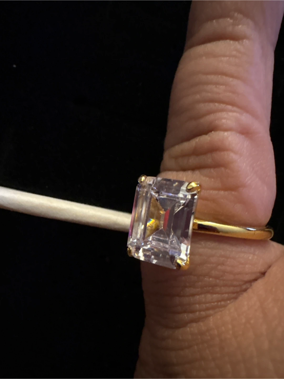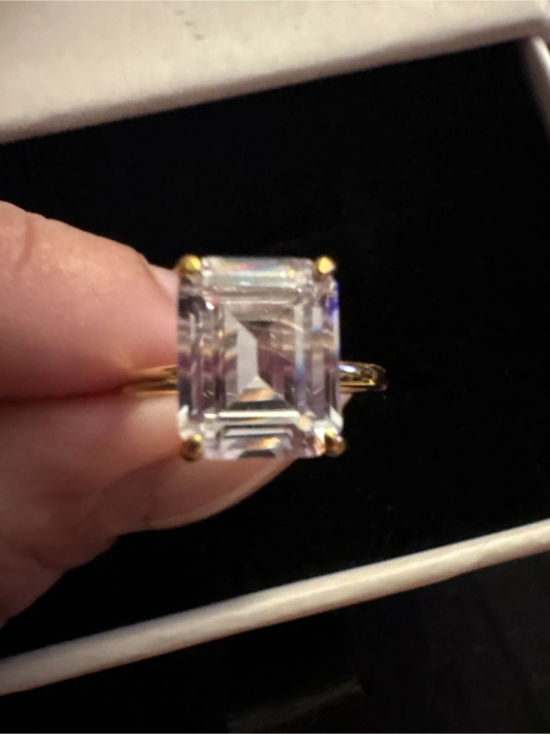 Selling a MEIDEYA ring. It comes with the original box. The ring features a large, emerald-cut stone. It's New