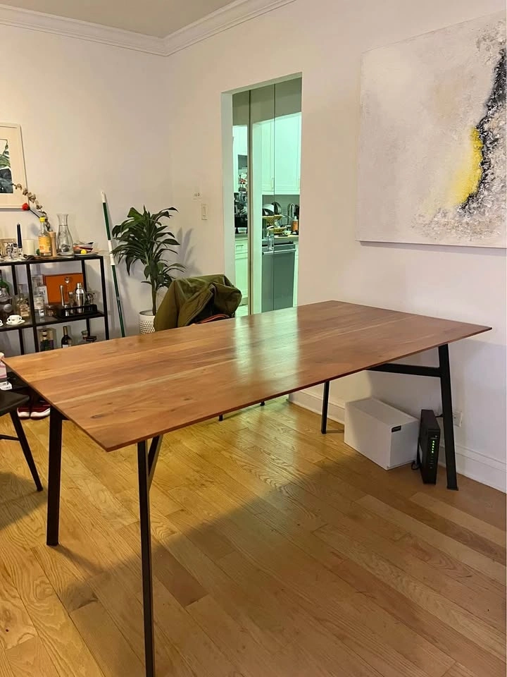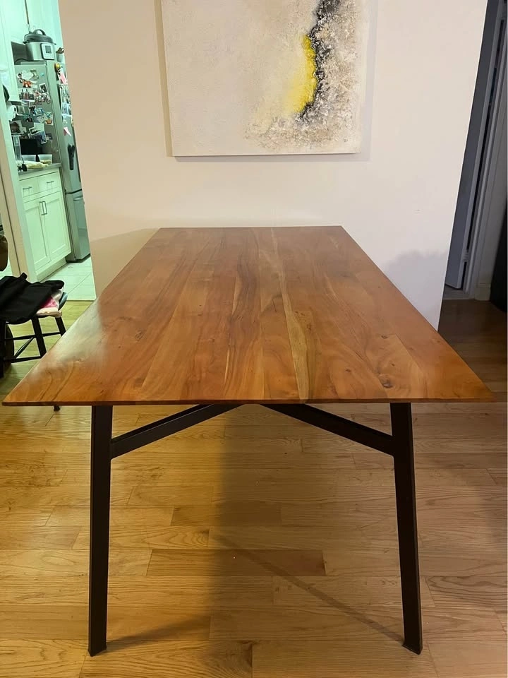 This table is really large and fits comfortably up to 8 people! It has some minor wear and tear scratches.