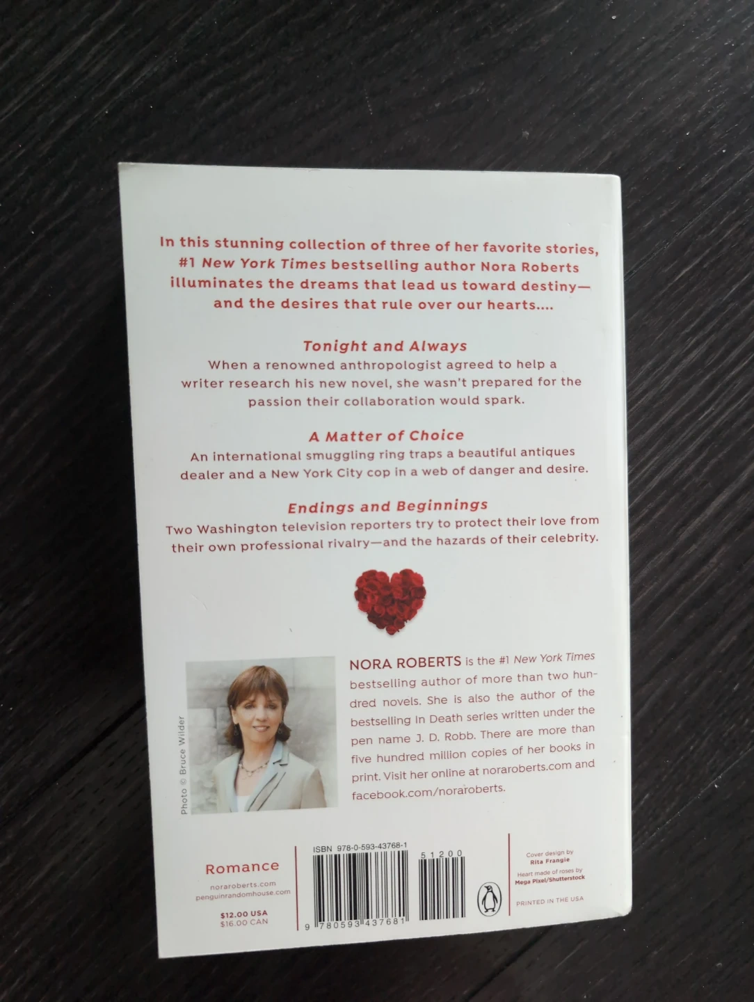 Selling a copy of Nora Roberts' "From the Heart"! This collection includes three novels: Tonight and Always, A Matter of Choice, and Endings and Beginnings
