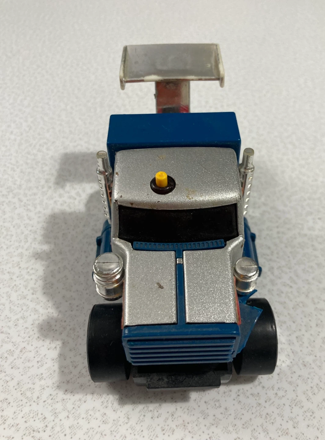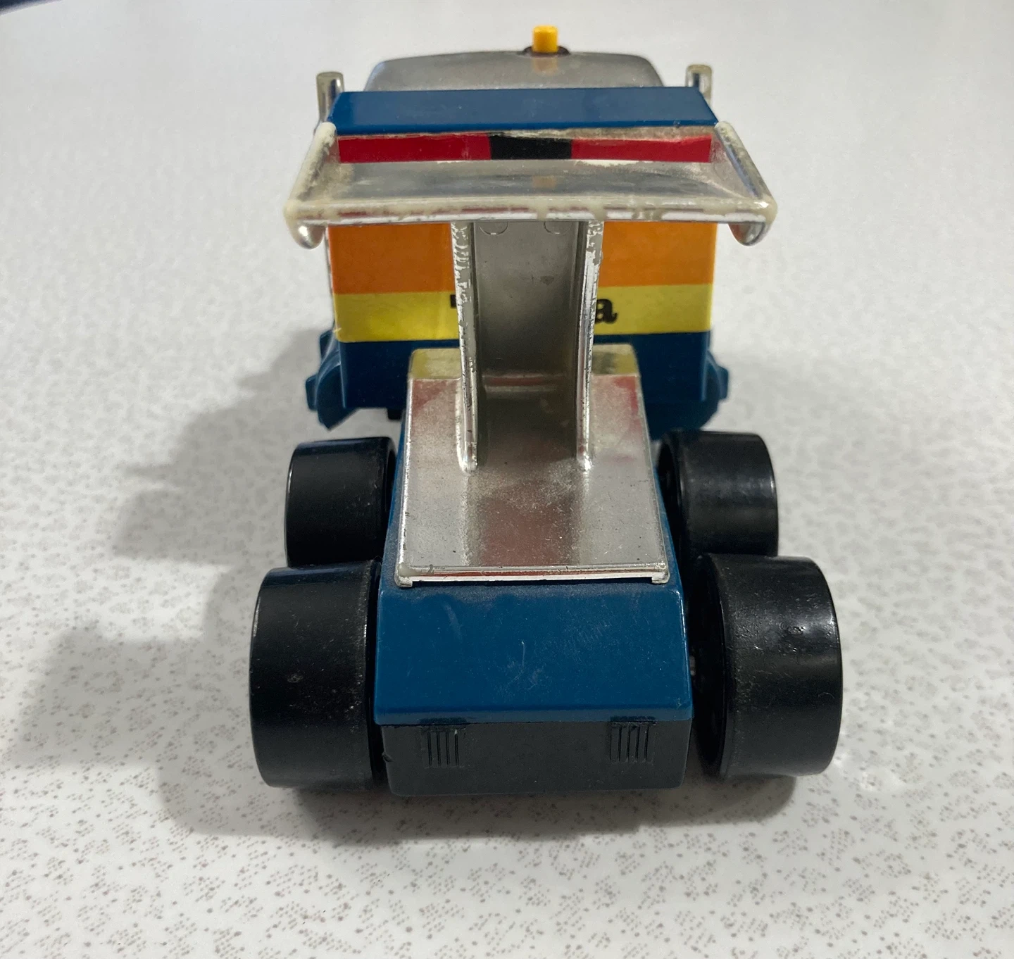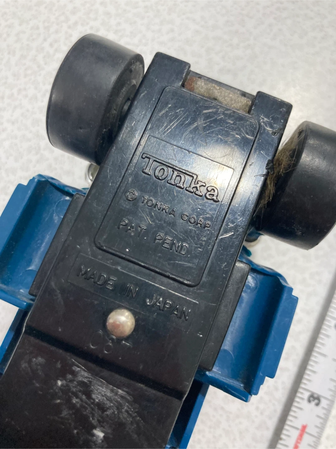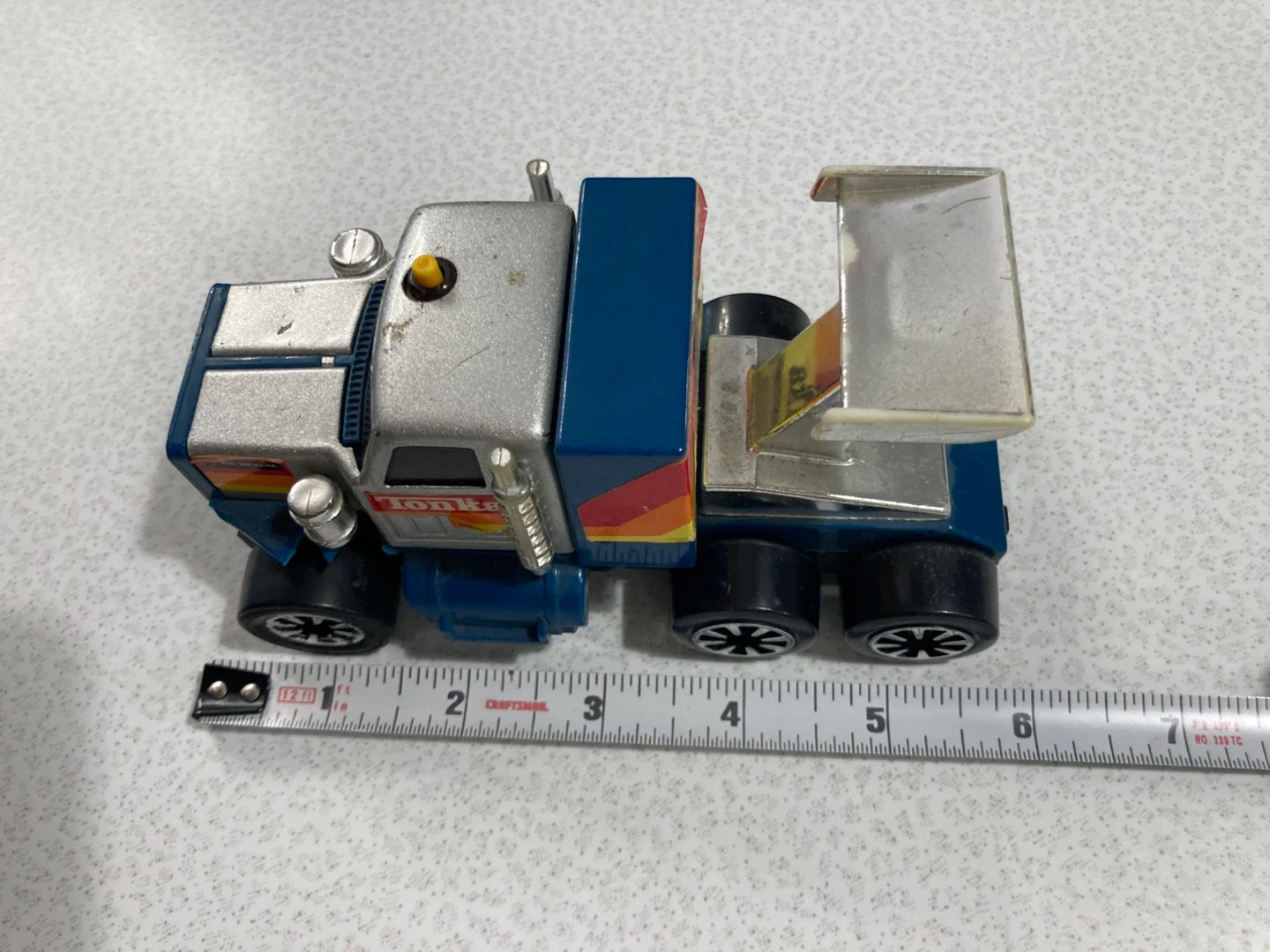 Selling a vintage Tonka GMC General toy truck! It's a classic piece with the iconic Tonka design. The truck has a silver and blue color scheme with rainbow detailing. It shows some signs of wear, which adds to its vintage charm!