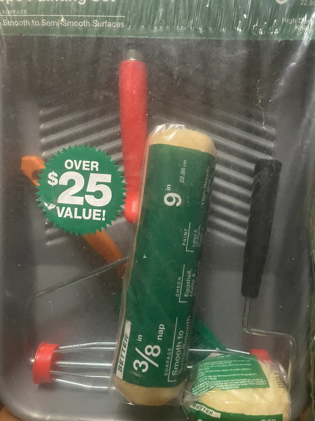 Selling a Better Scope Painting Set for smooth to semi-smooth surfaces. The set includes a 9-inch roller and a 3/8-inch nap roller, perfect for various painting needs. Great value for your next home project!
