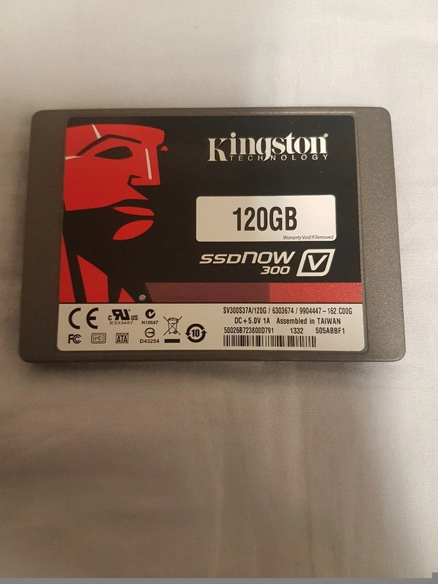 Kingston Technology brand, 120 GB capacity, SSDnow 300 V. Part #: SNA-DC/U ASSY #: 9931154-001.A00LF S/N: 08733931507687 FW: V1.08. Comes with dual, data transfer USB cord. Assembled in Taiwan, made in China. Great working condition. Available for pickup near Cambie Road & No. 5 Road in Richmond.