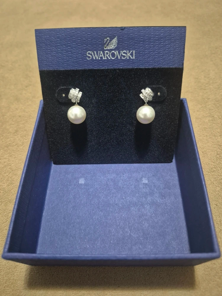 Selling a pair of beautiful Swarovski pearl earrings! They come with the original box, perfect for gifting or keeping them safe. These earrings are in excellent condition and ready to add a touch of elegance to any outfit