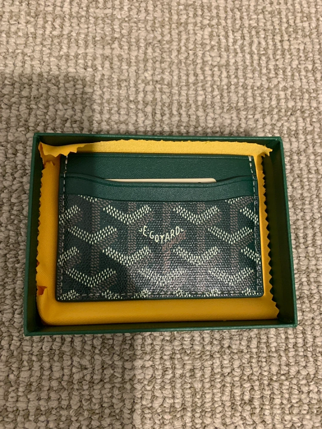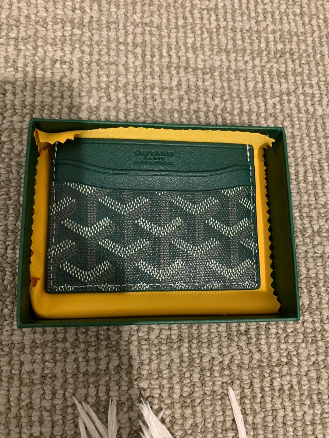 Selling a Goyard card holder in a beautiful green colour! It comes with the original box. It's in great condition and perfect for carrying your essential cards. The material feels very durable and the design is iconic. Feel free to ask any questions!