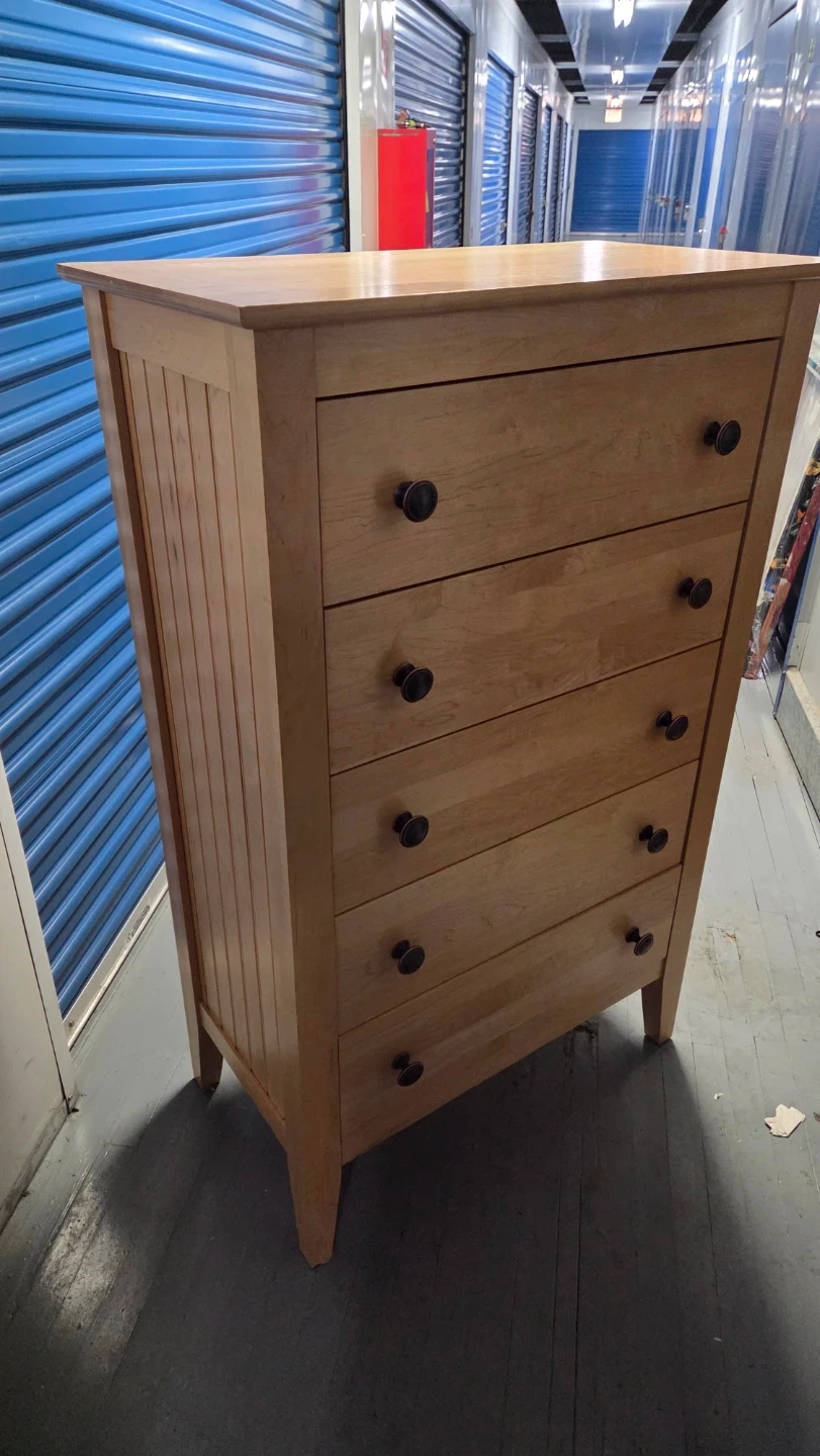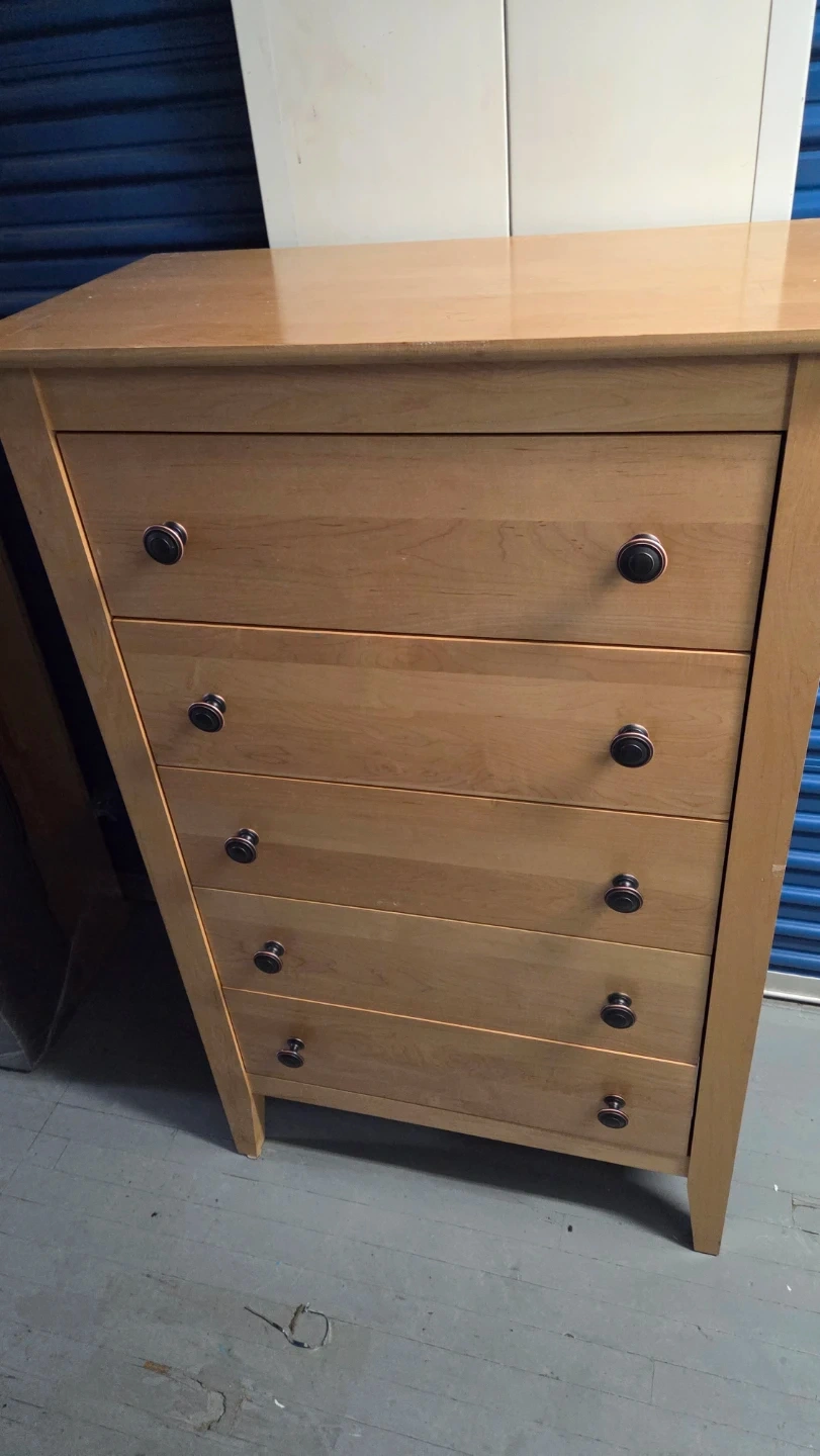 Selling a wooden 5-drawer dresser. It's in good condition and ready to use. Perfect for adding storage to any room 2ft 9in long 4ft 5in tall