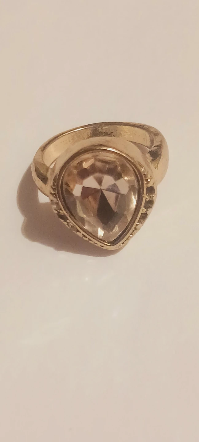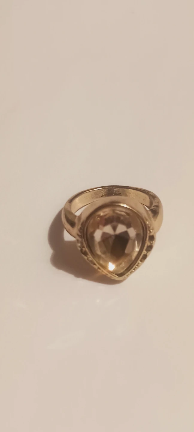 Gold Tone Teardrop Smokey Stone Ring. It's a statement piece that adds sparkle to any outfit! Size 6. Excellent condition. ALL MY PRICES ARE NEGOTIABLE !!