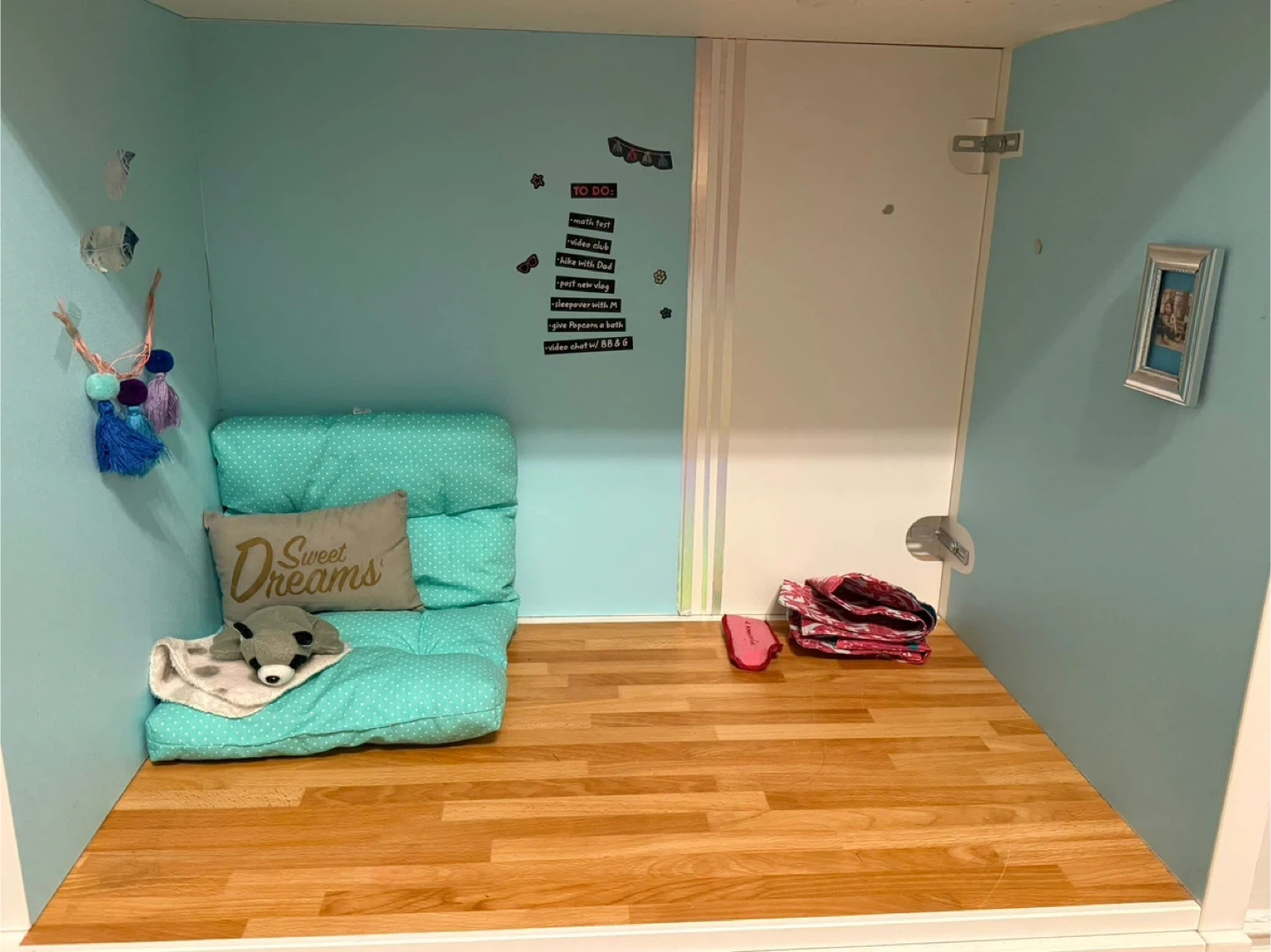(Possible to add a full kitchen, a TV/karaoke set, a dance studio, a full desk with tons of cute accessories (computer, magnetic board, microscope, stationary for a bundle price of 600$)