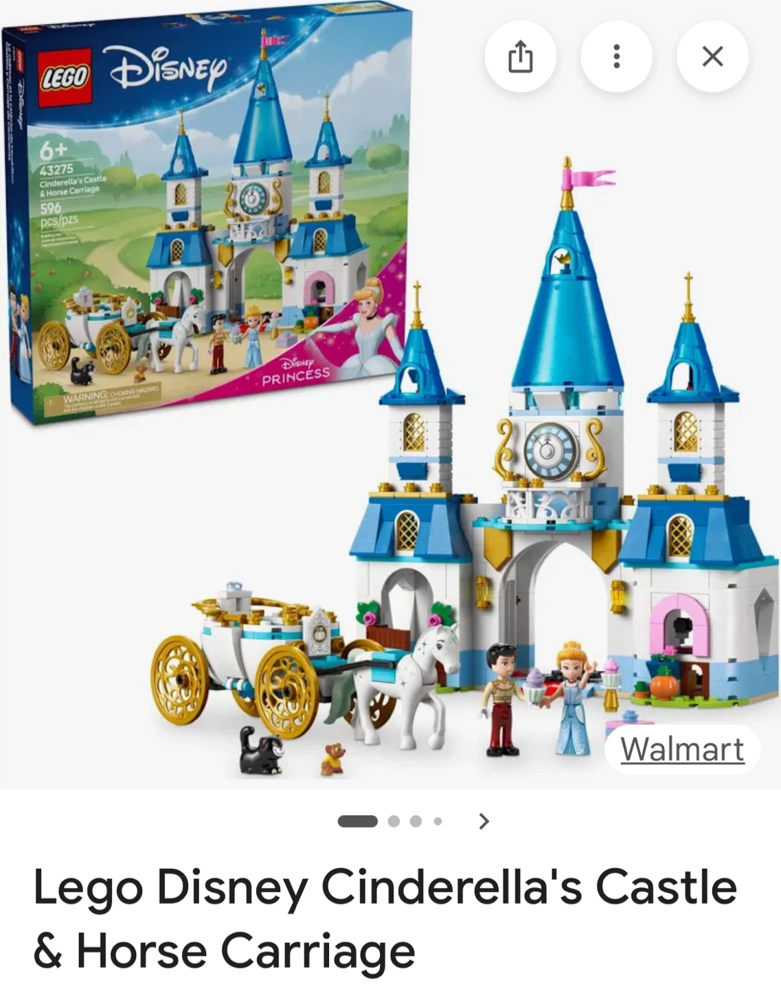 Selling a LEGO Disney Cinderella's Castle & Horse Carriage set (43275). This set is suitable for ages 6+. It includes 596 pieces to build Cinderella's magical castle and horse-drawn carriage. The box is included!
