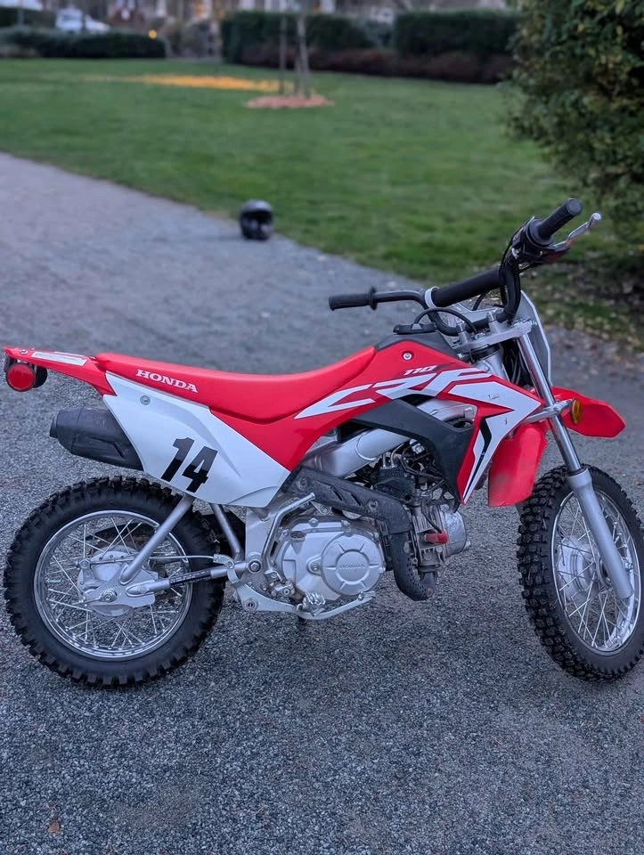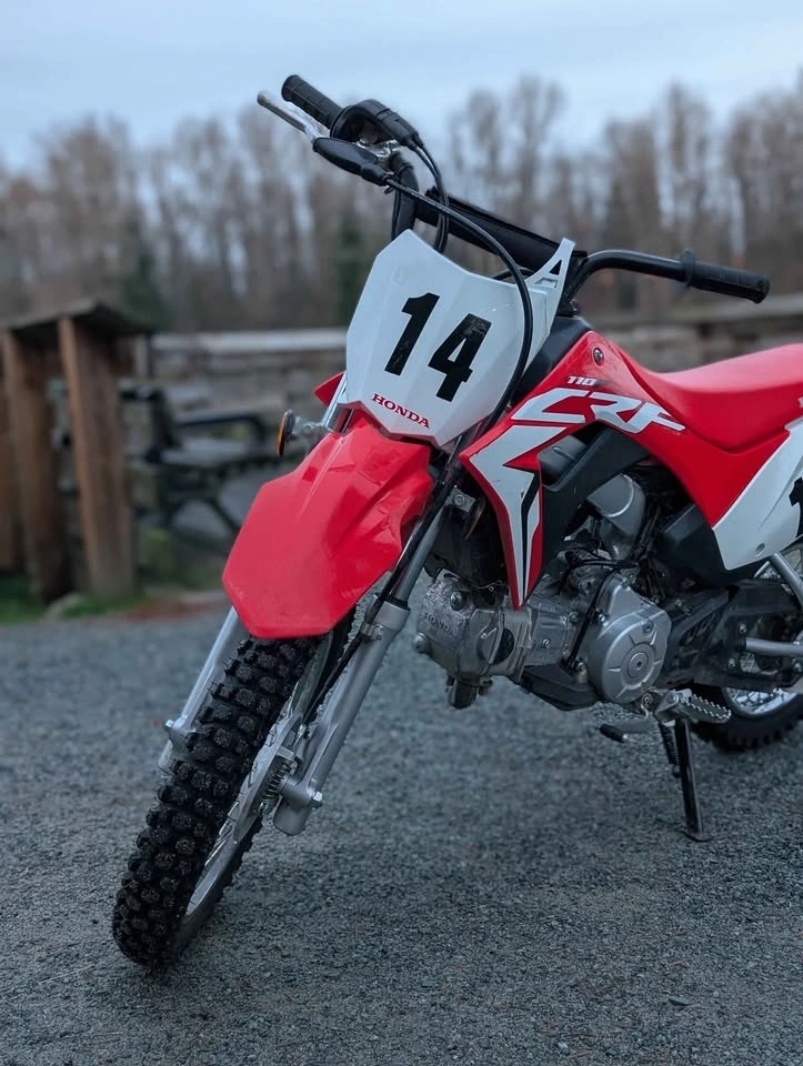 This is a 2021 CRF 110 under 20 hours great condition it has a brand new wheel we and wheel lock which stops the tire from crunching we are selling for 3500 or obo